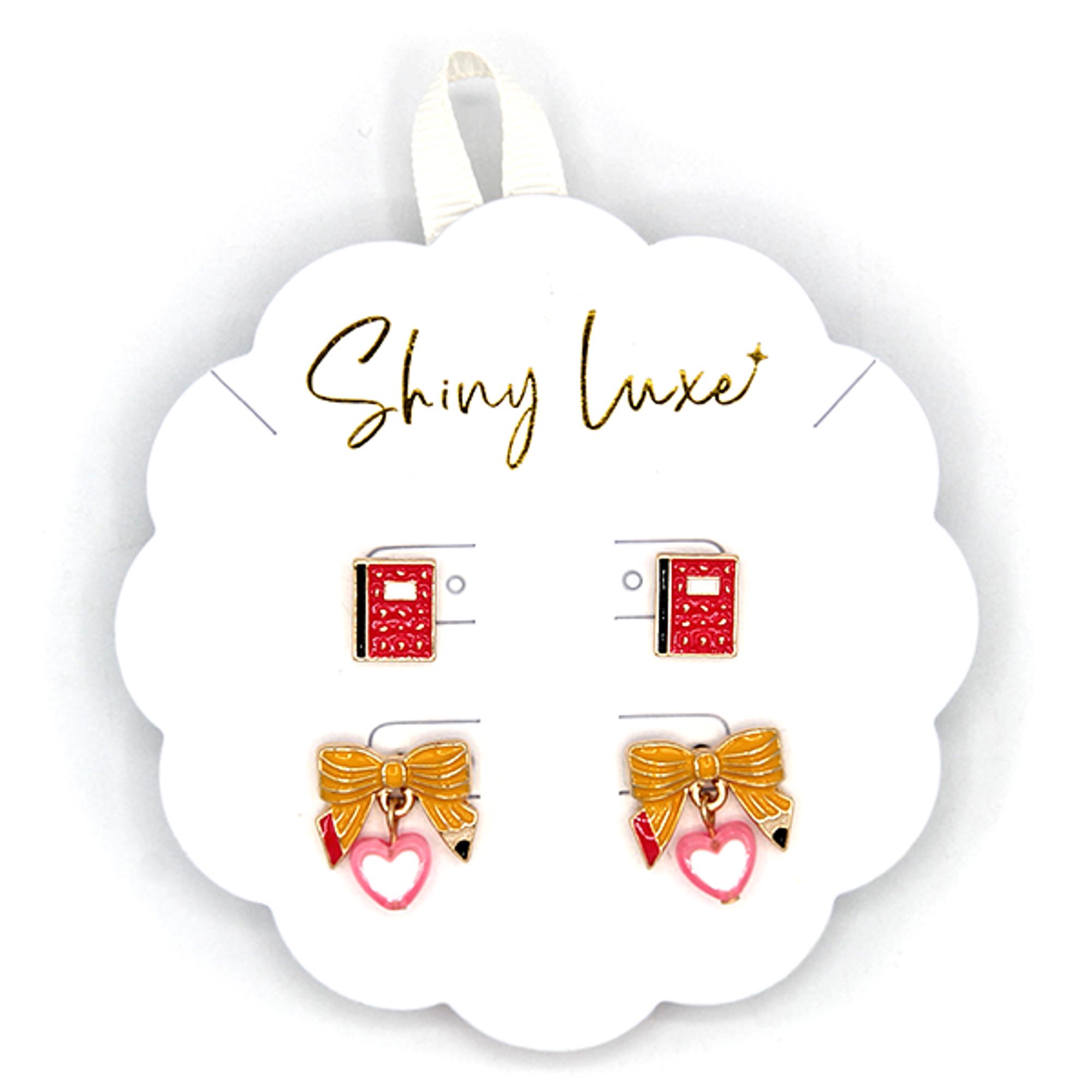 TEACHER STUDENT COLLEGE Book & Pencil Bow Heart Stud Earrings SET - Great Gift