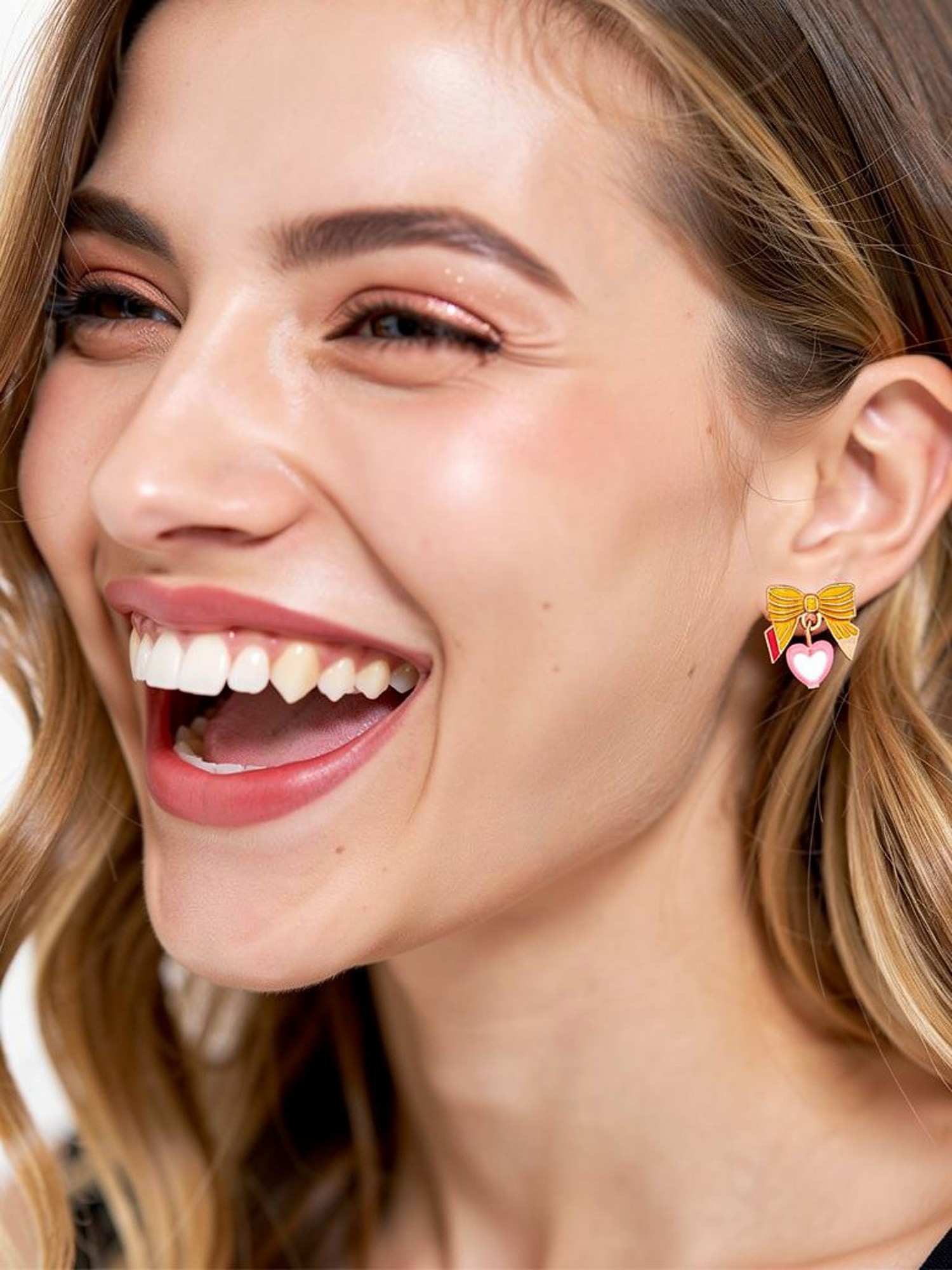 *Note earrings appear larger in pics, see actual size listed here. These are just cute, normal-sized studs. ;0)
