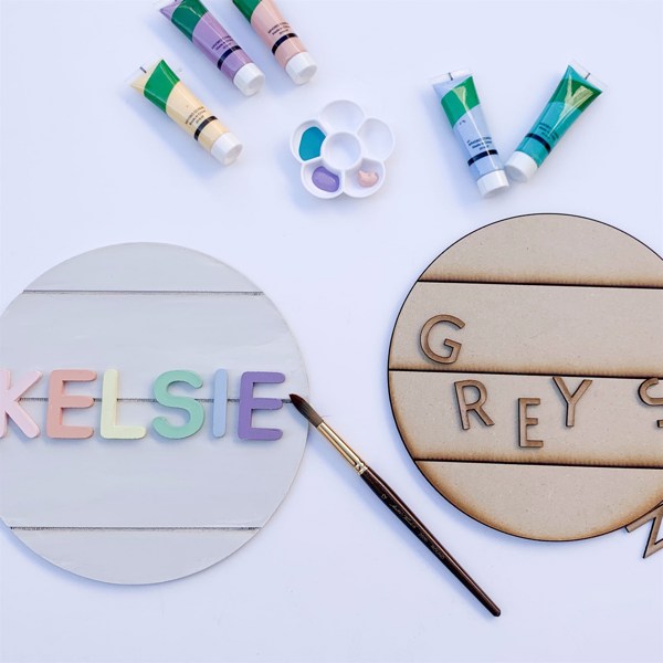 Nice signs made of press wood. Letters were of a size that was easy for a 4 year old to hold and paint. Very strong smell on opening but after being out of package for awhile it went away. Only thing that would have made it better would have been to include something to hang it with.