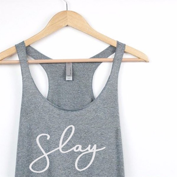 Took forever to ship, but great tank. I ordered Heather gray with rose gold SLAY. Tank is cute!