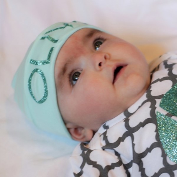 Wish I had gotten the unfolded hat instead of the folded one. I feel like if it does fit my baby girl when she arrives that it won't fit her for long. It looks really small. Also looks as though the initials on the hat could have been placed in a better position. May just be my OCD self but the lines on the hat will be crooked/uneven in order to have the initials in the middle of my babies head.