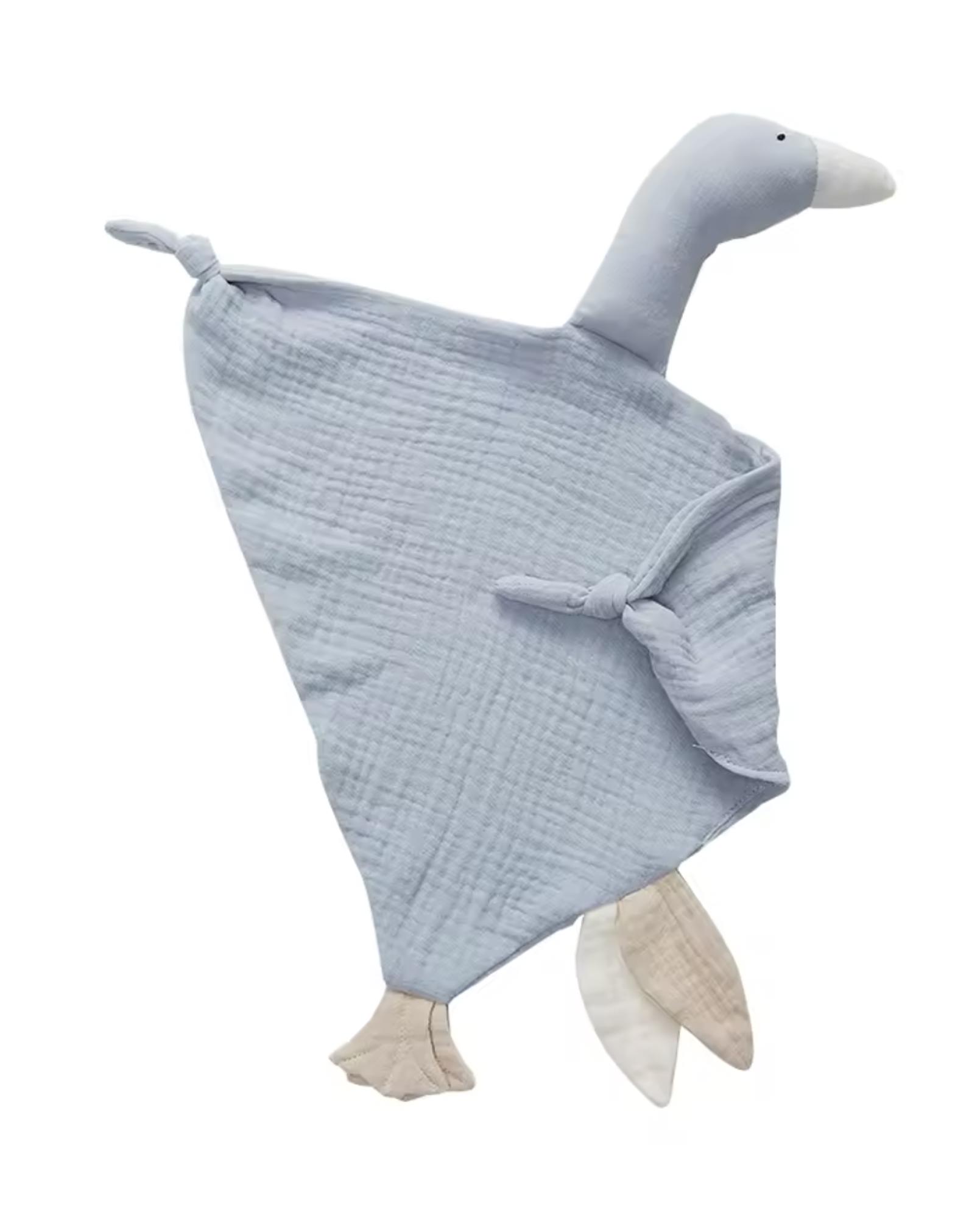 Introducing our Muslin Goose Lovey, a versatile infant comfort toy that doubles as charming nursery decor and makes for an ideal baby shower gift. This soft-textured lovey, available in several colors, serves as a perfect naptime and bedtime helper for babies and acts as a soothing toddler sleep aid, ensuring peaceful nights for both little ones and parents alike.