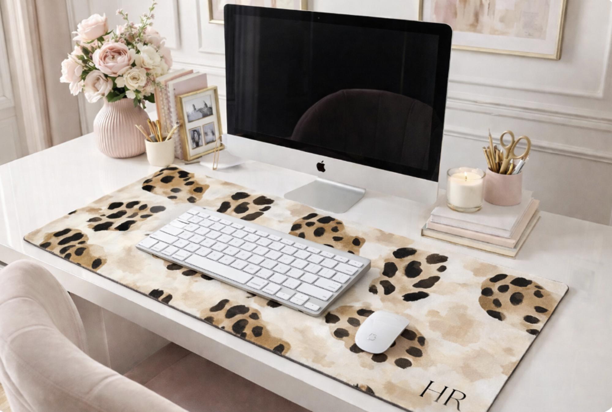 Chic Animal Print Desk Mat – Personalized Workspace Essential