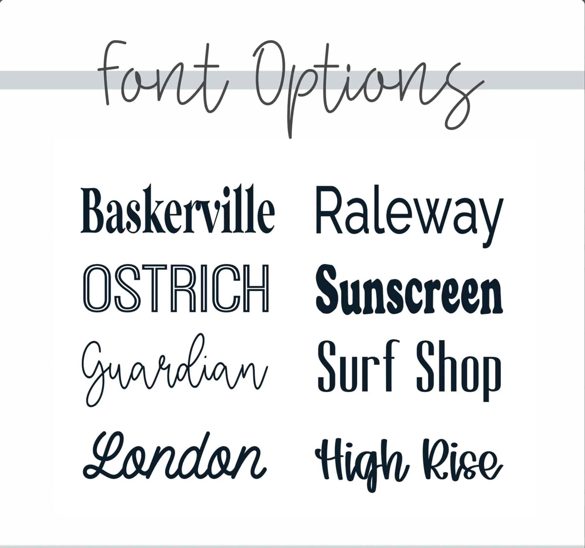 Having trouble choosing a font? Preview fonts here: