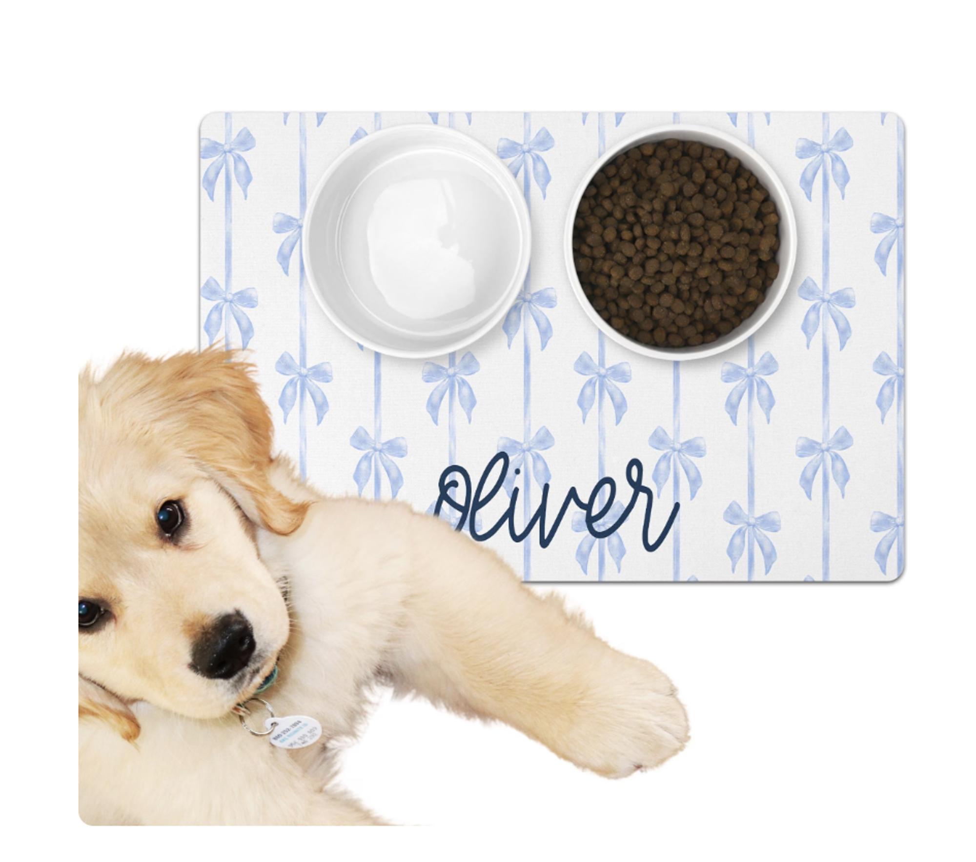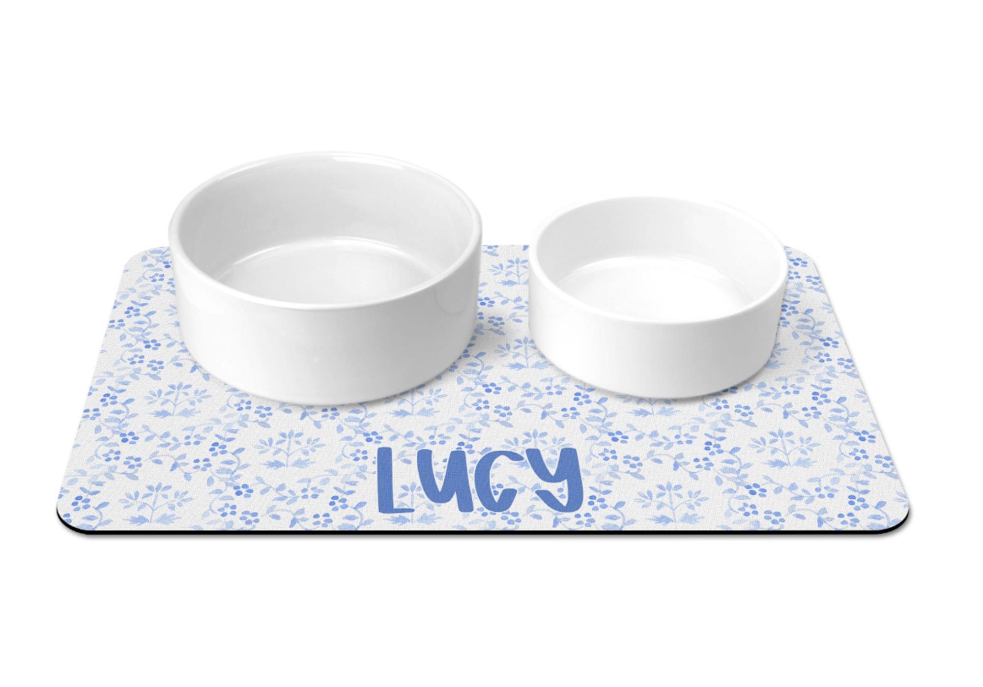 This Personalized Dog Bowl Mat with Name is a stylish Custom Pet Placemat For Dog Bowl featuring a Blue and White Chinoiserie design. It’s a perfect Dog Gift for a New Puppy, and it also makes a great Custom Bowl Mat for a Cat Gift or for any Pet Lover or Dog Lover