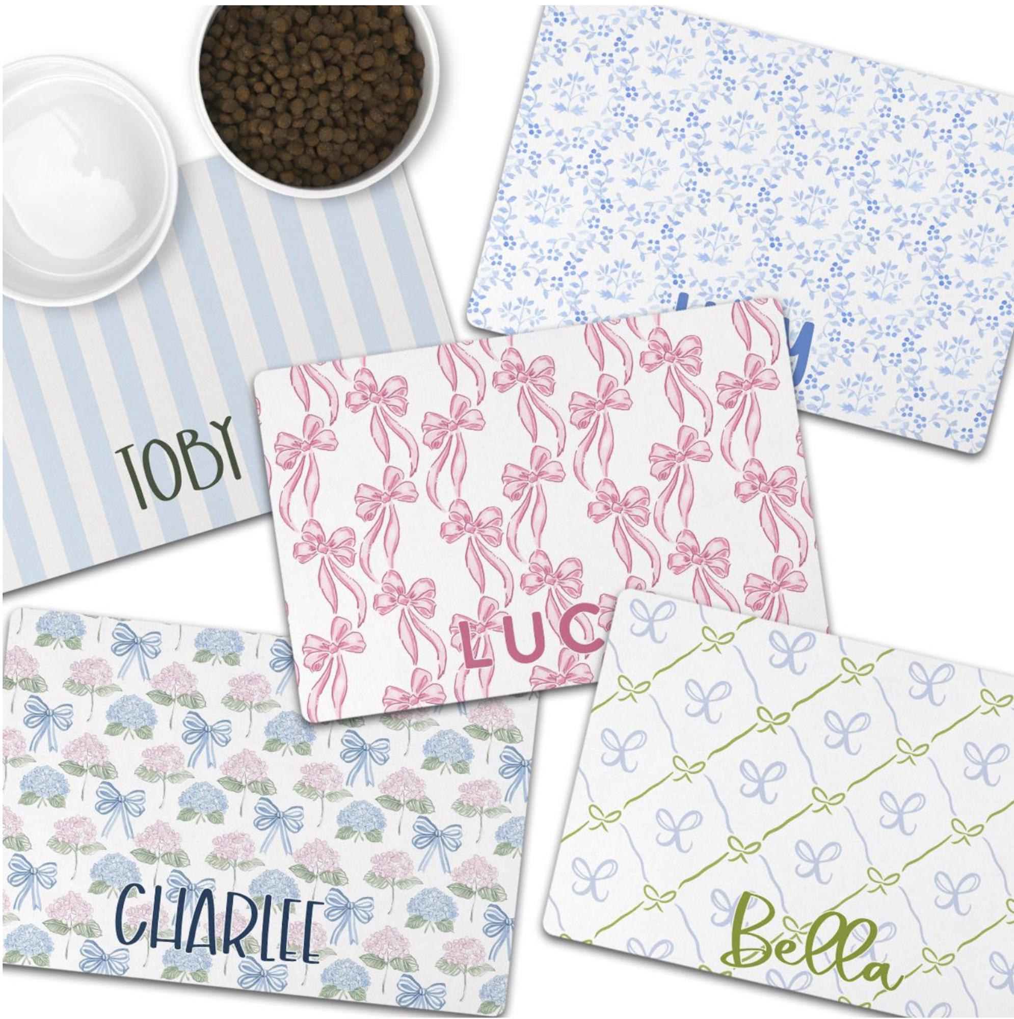 This Personalized Dog Bowl Mat with Name is a stylish Custom Pet Placemat For Dog Bowl featuring a Blue and White Chinoiserie design. It’s a perfect Dog Gift for a New Puppy, and it also makes a great Custom Bowl Mat for a Cat Gift or for any Pet Lover or Dog LoverThis Personalized Dog Bowl Mat with Name is a stylish Custom Pet Placemat For Dog Bowl featuring a Blue and White Chinoiserie design. It’s a perfect Dog Gift for a New Puppy, and it also makes a great Custom Bowl Mat for a Cat Gift or for any Pet Lover or Dog Lover