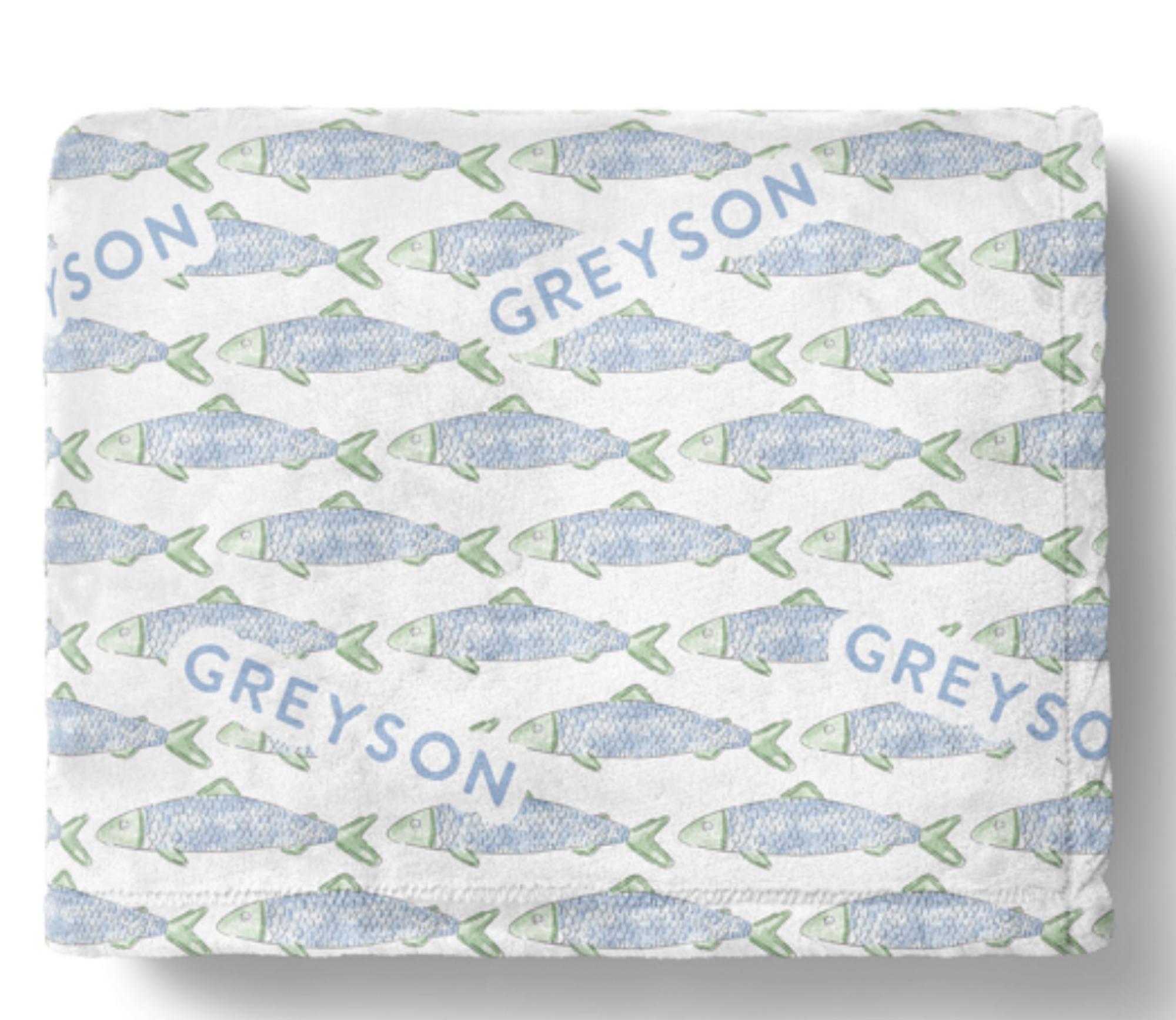 Introducing our Personalized Baby Blanket, a custom name fish lover gift that's perfect for newborn baby showers, toddlers or any aspiring fisherman. This soft minky doubles as nursery decor, preschool nap mat or a tummy time mat, offering both comfort and style for your little one.