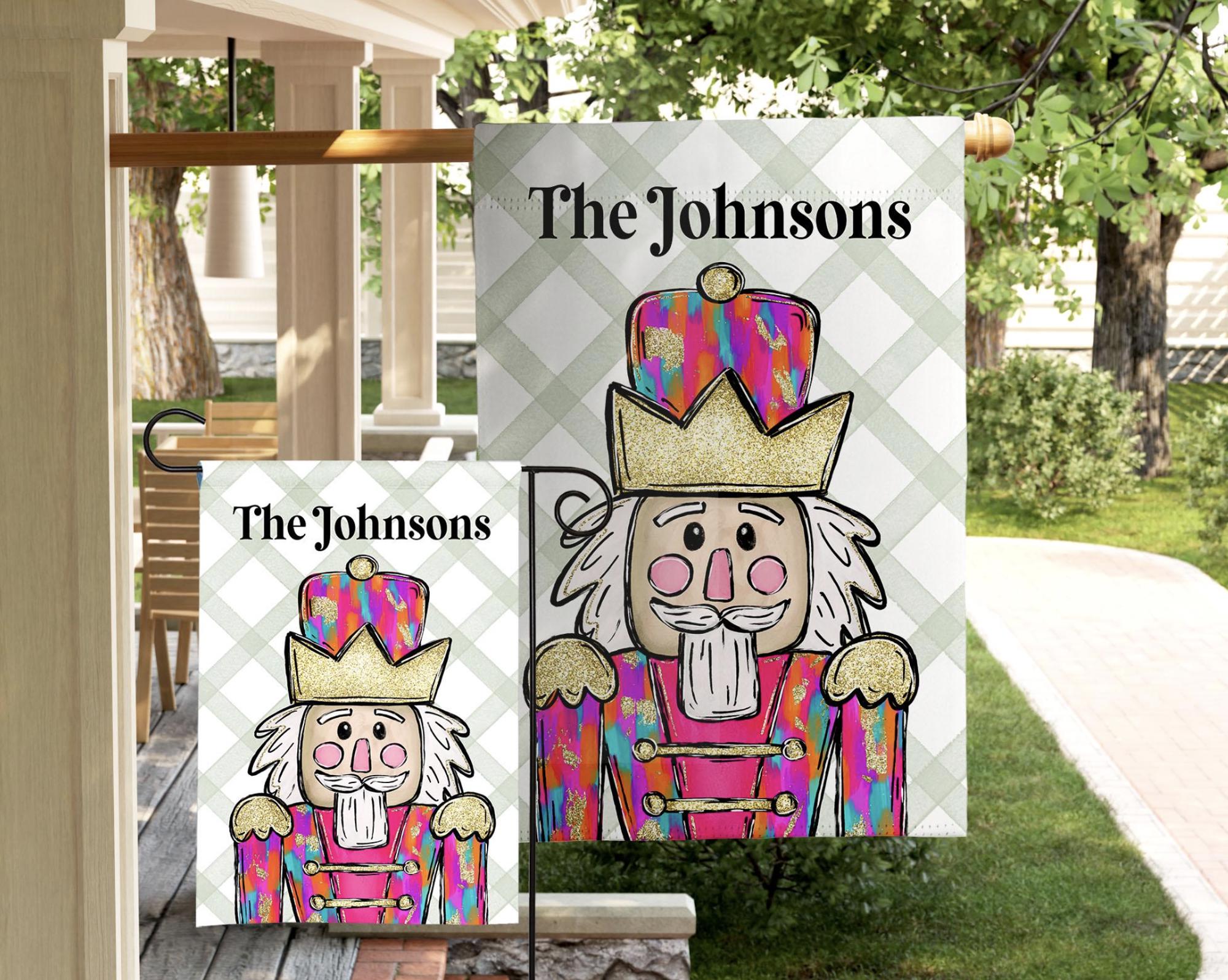 Nutcracker Christmas Flag Holiday Decor - Personalized to adorn any house or porch. Choose from new Fonts!