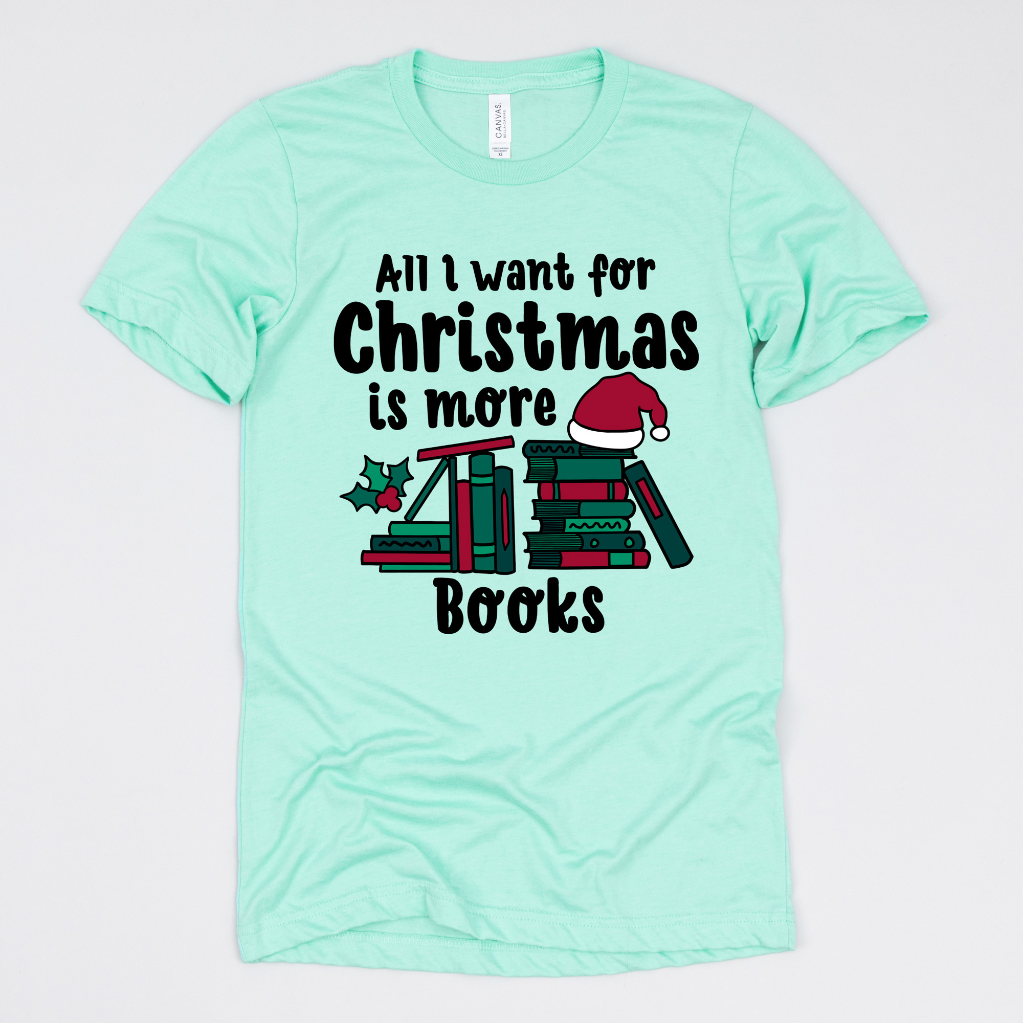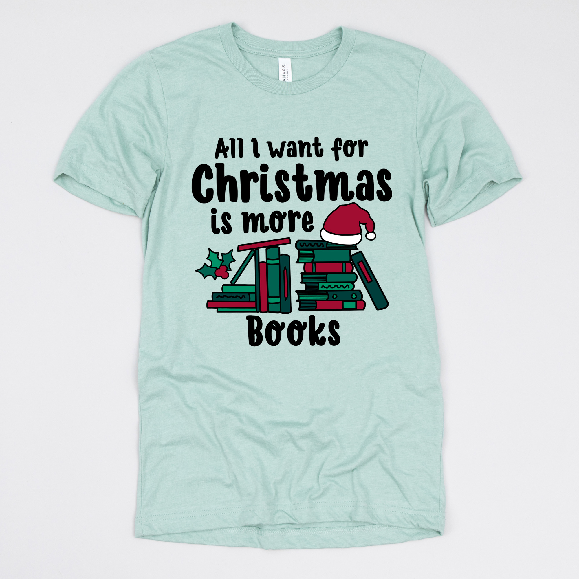 Get lost in the pages this holiday season with these cozy Christmas reading tees — made for book lovers, teachers, librarians, and anyone who’d rather spend December curled up with a good story. Each design celebrates the joy of reading and the magic of Christmas, from “All I Want for Christmas Is More Books” to “Merry Bookmas” and more. Whether you’re gifting a fellow bookworm or wearing it to your next classroom party, library event, or cookie-baking night, these festive reading shirts bring a touch of warmth and wit to every holiday moment. Pair them with jeans, flannel, or your favorite mug of cocoa for a look that’s pure literary cheer.