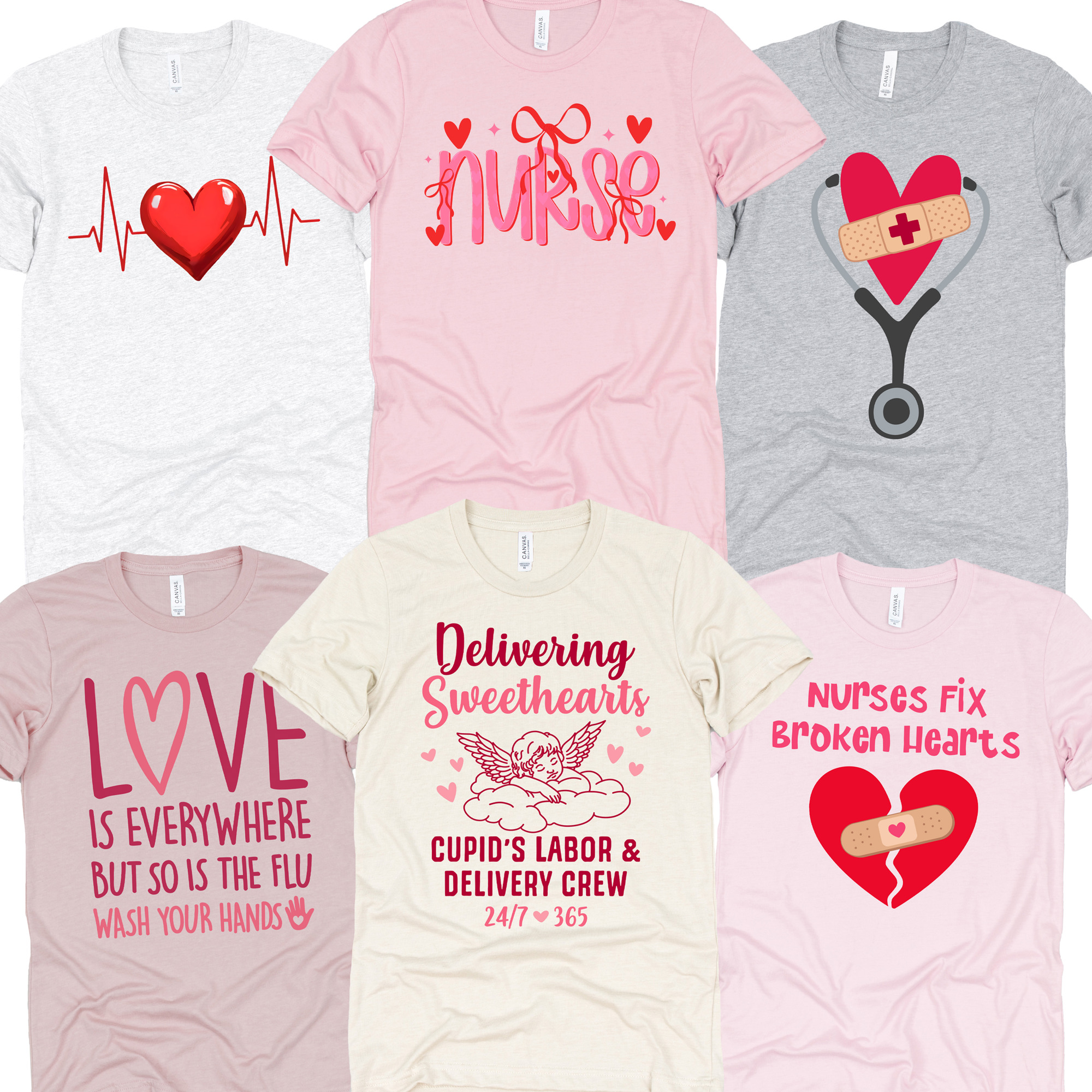 Valentine’s Day Nurse Graphic Tees – Cute Group Nurse Tshirts, Medical Valentine Shirts, Heart and Love Nurse Styles, Hospital Valentine Wear