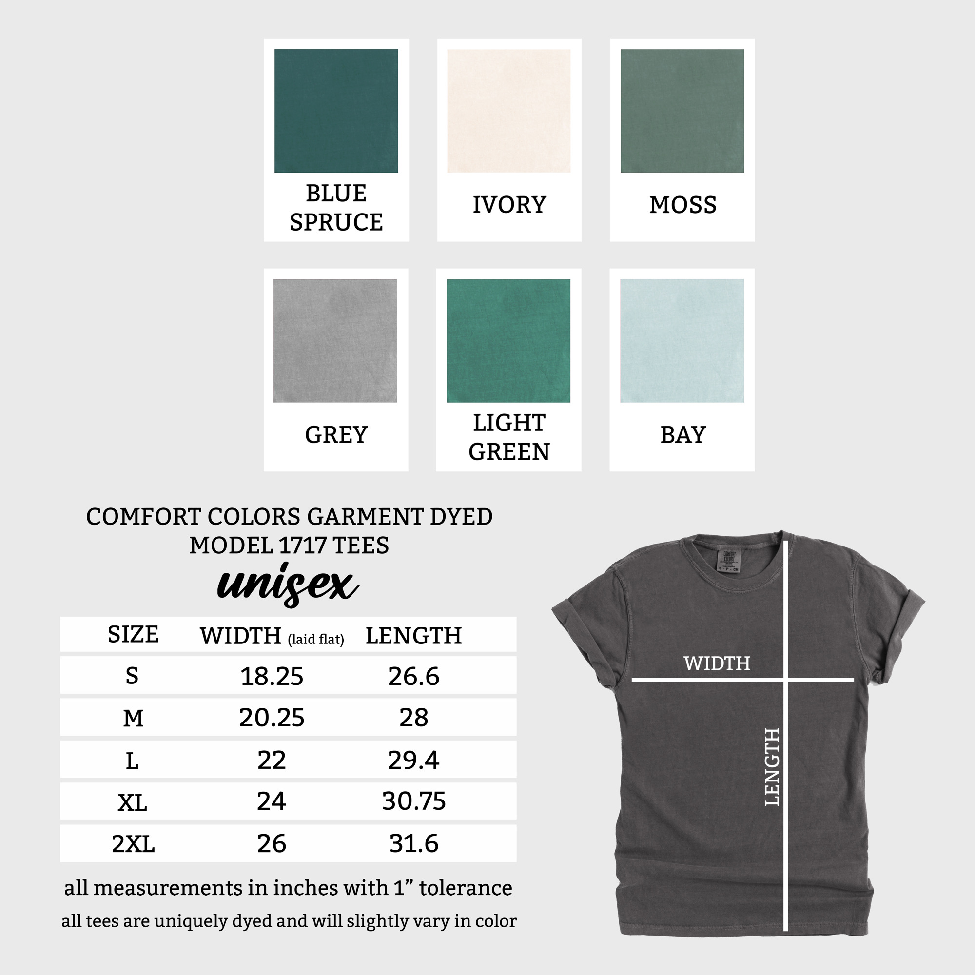 - We use unisex/men-s fit tees from Comfort Colors, model number CC1717.