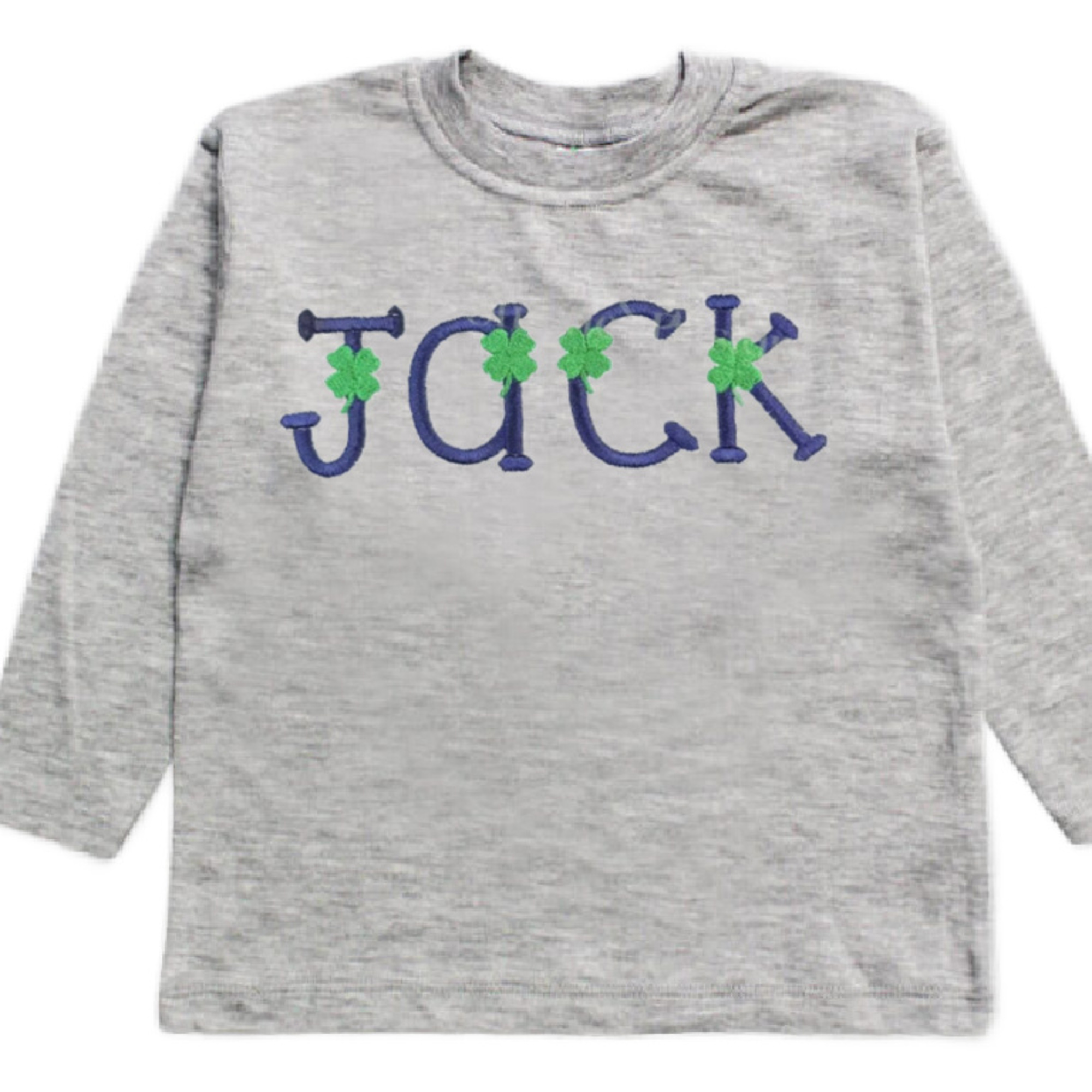 Simple, sweet, and full of luck—this clover embroidered name tee is a festive favorite you’ll reach for year after year! 💚🍀
