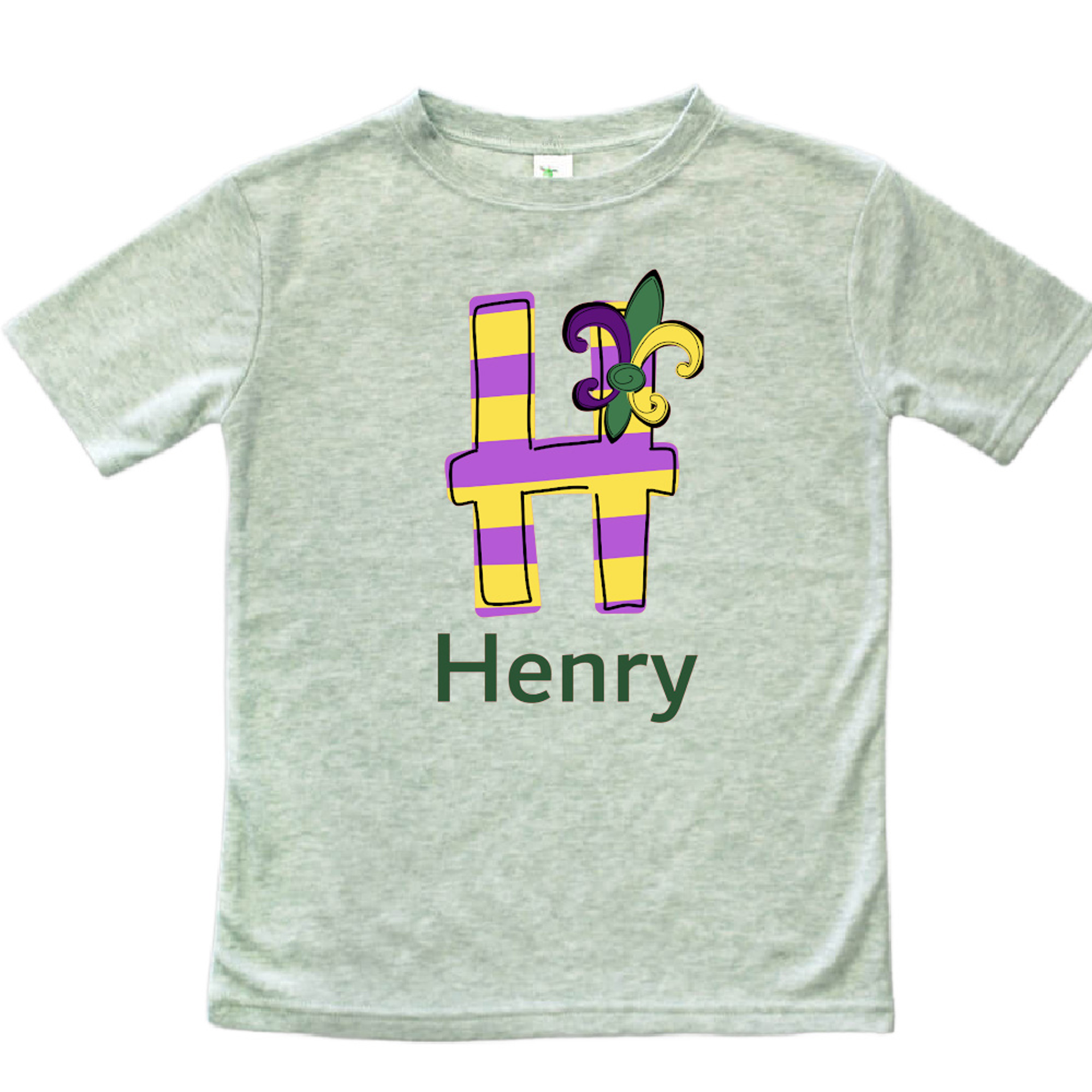 Perfect for Mardi Gras parades, school celebrations, and keepsake photos—this personalized tee is a must-have for little revelers! 🎉💜💛💚