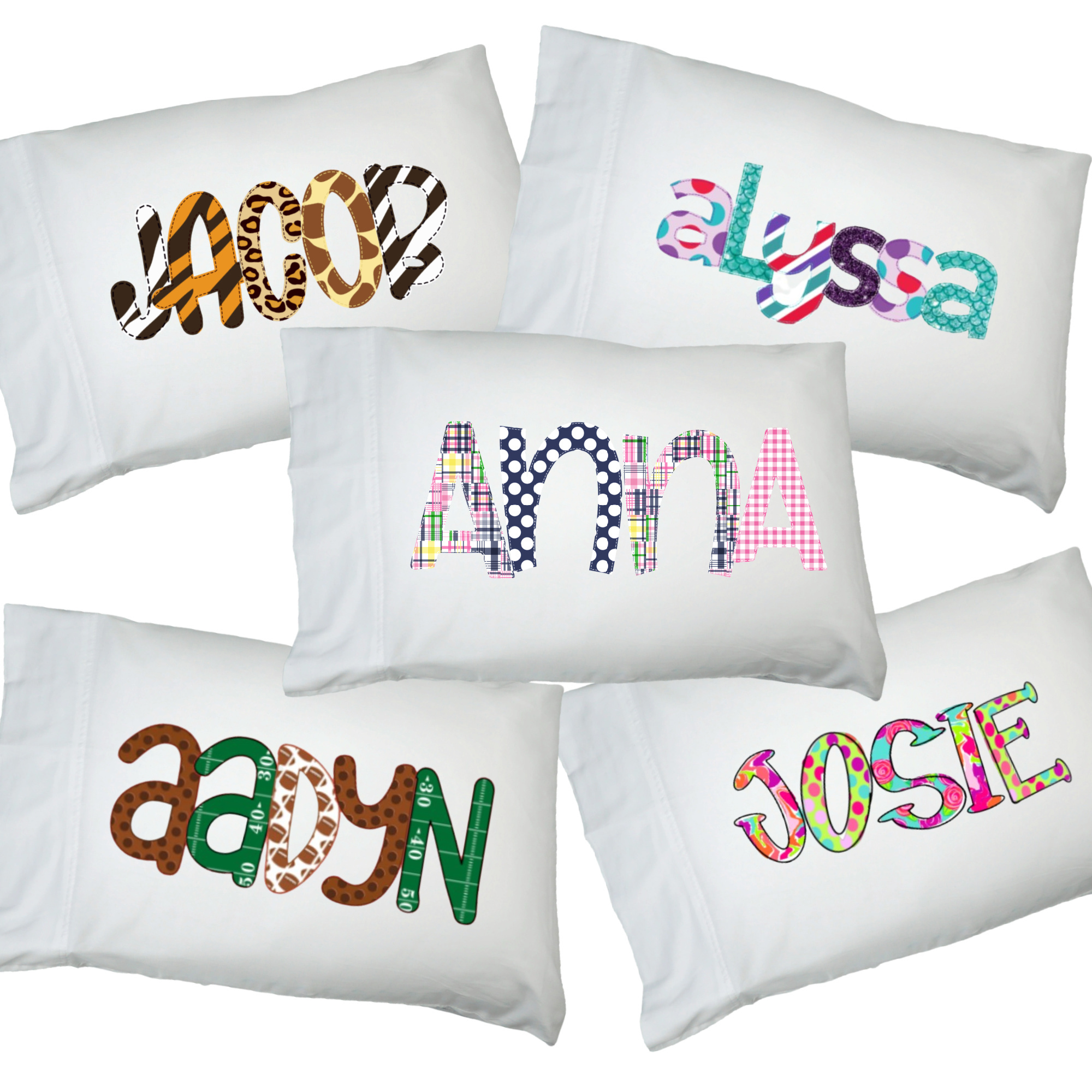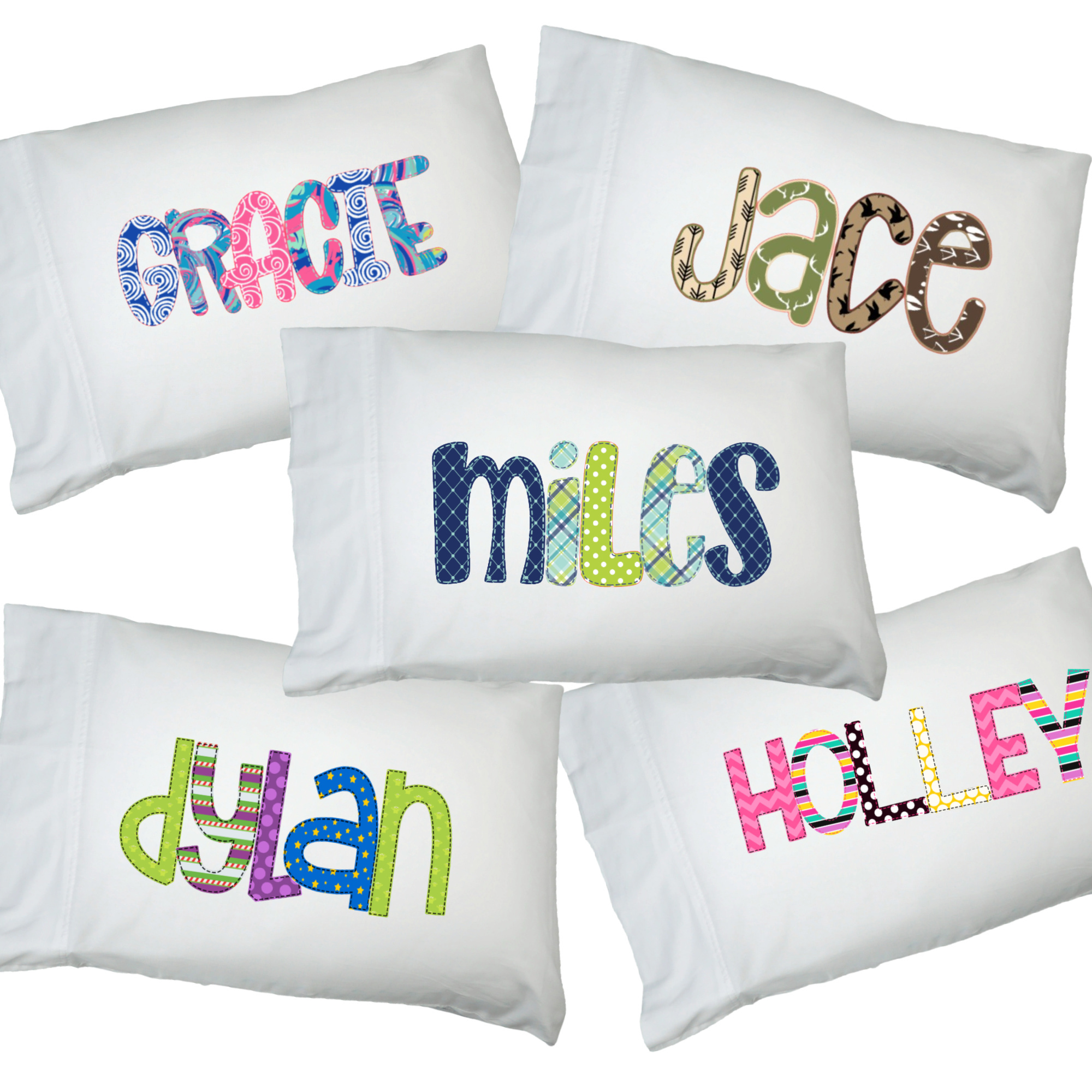 My Alphabet Soup Alphas are the most popular on pillowcases!! The alphas are dye sublimated onto the standard size pillowcase. Each alpha is made up of 3 to 4 patterns that we use to create the perfect design for you. The letters are graphic files. Some alphas are lowercase, some are uppercase, and some are a combination of both. They are meant to look whimsical and fun. Each name will look different depending on the length of the name. With over 48 options, there is something for everyone!!