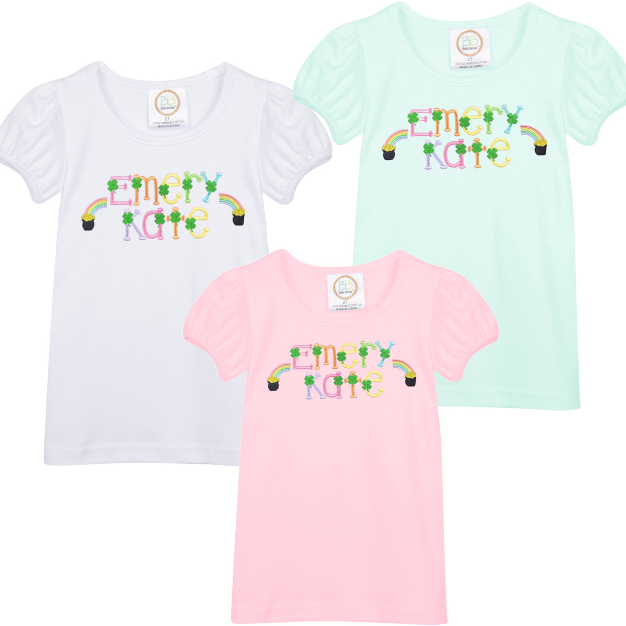 Rainbow Clover Name Tee St. Patrick's Day Personalized | Sizes 2T-10