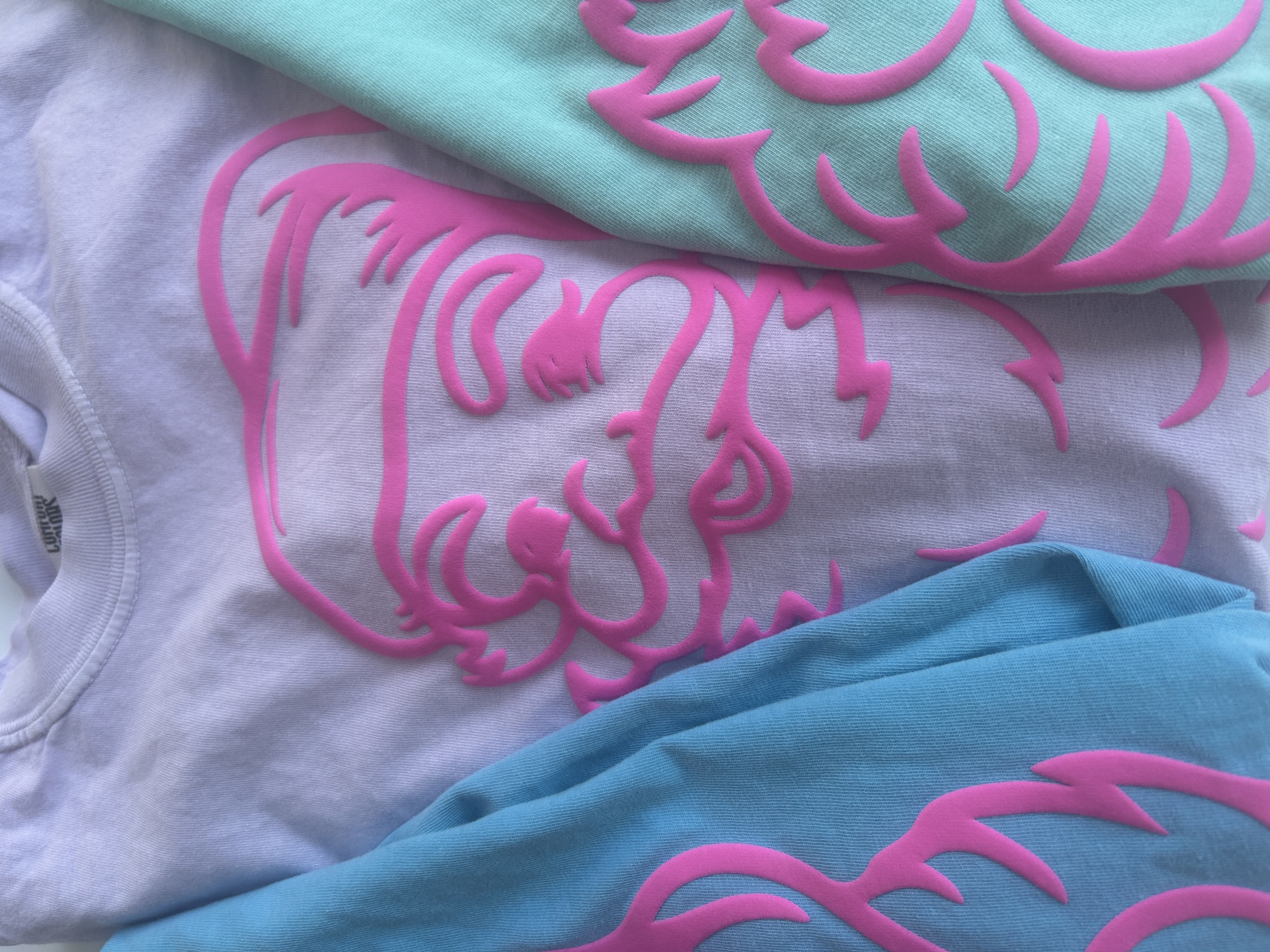This high quality Comfort Color tee comes adorned with a pink "puff" jolly Santa.