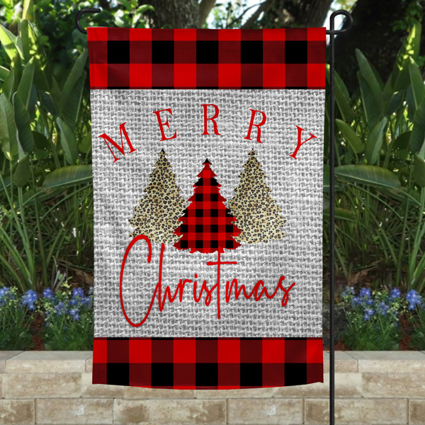 Garden Flag - Merry Christmas Burlap and Three Trees