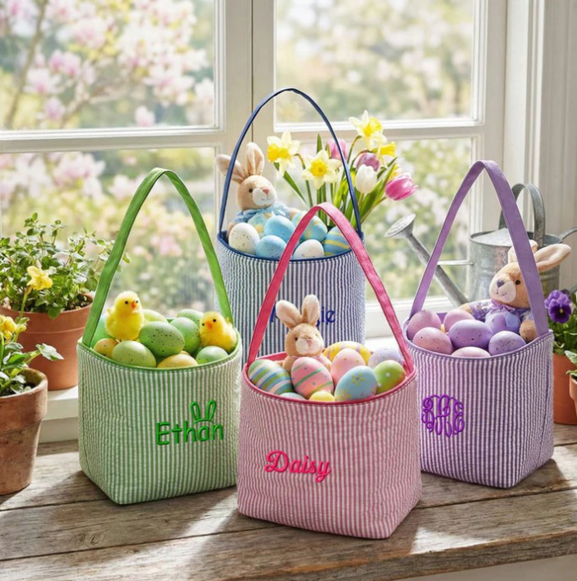 Rock the Easter egg hunt this year with a personalized basket! Its a creative way for your little one to distinguish themselves from the rest of the Easter egg hunters this year! There is plenty of storage for Easter eggs and includes a strap for easy transport.