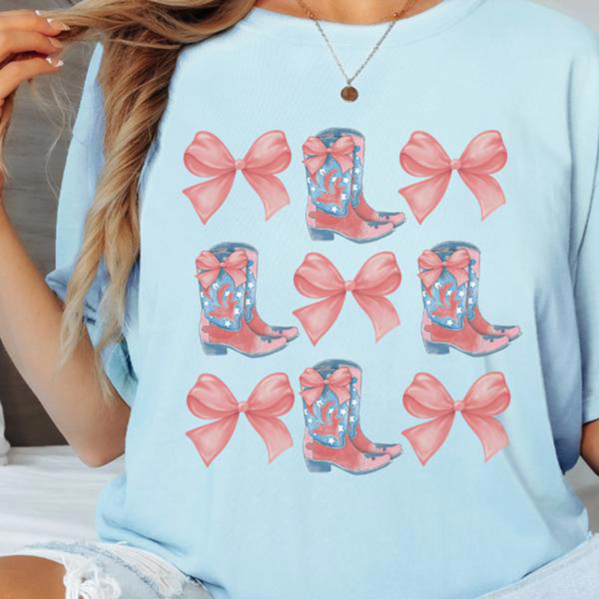 Bows and Boots Comfort Colors Graphic Tee, Women’s Fall Western Cowgirl Shirt ,Coquette Bow Aesthetic Country Concert Outfit