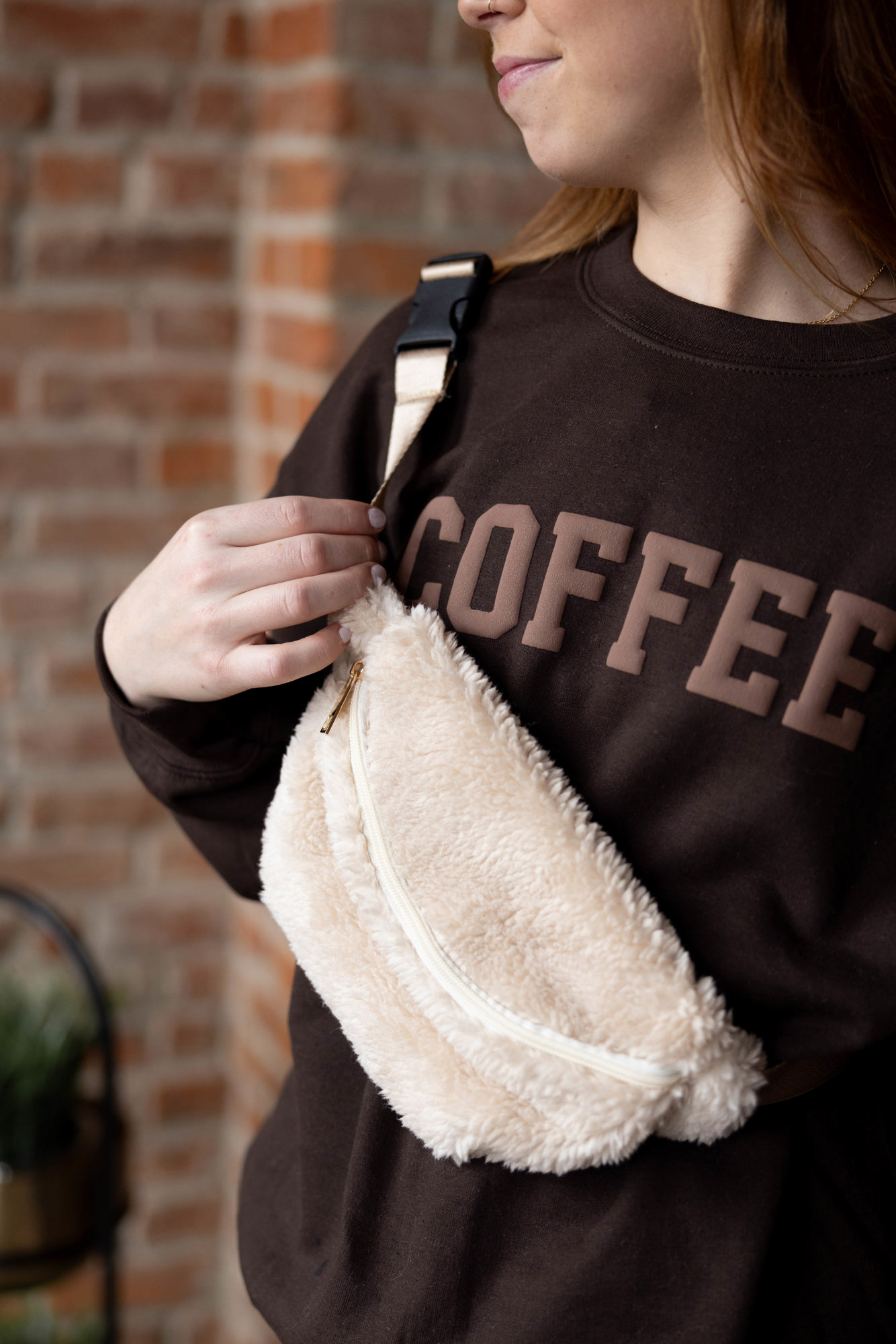 Featuring a timeless design in warm chocolate brown with tan lettering, this sweatshirt effortlessly blends style and coziness. It's the perfect addition to any coffee lover's wardrobe and makes an excellent gift for the caffeine addict in your life!