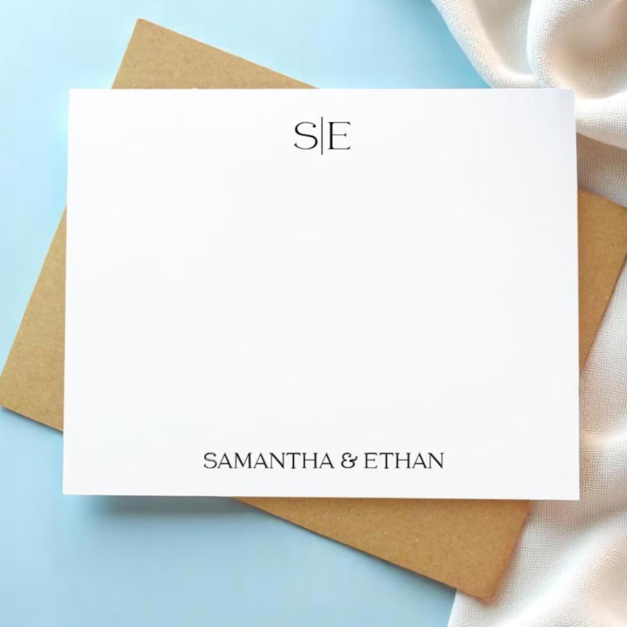 Celebrate your love story with our Couples Stationery Set—a beautifully crafted personalized notecard set made just for two. This elegant custom stationery is perfect for thank-you notes, newlywed letters, or sweet everyday moments. Designed as a timeless wedding custom stationery set, it's the ultimate thoughtful gift or keepsake for any couple.