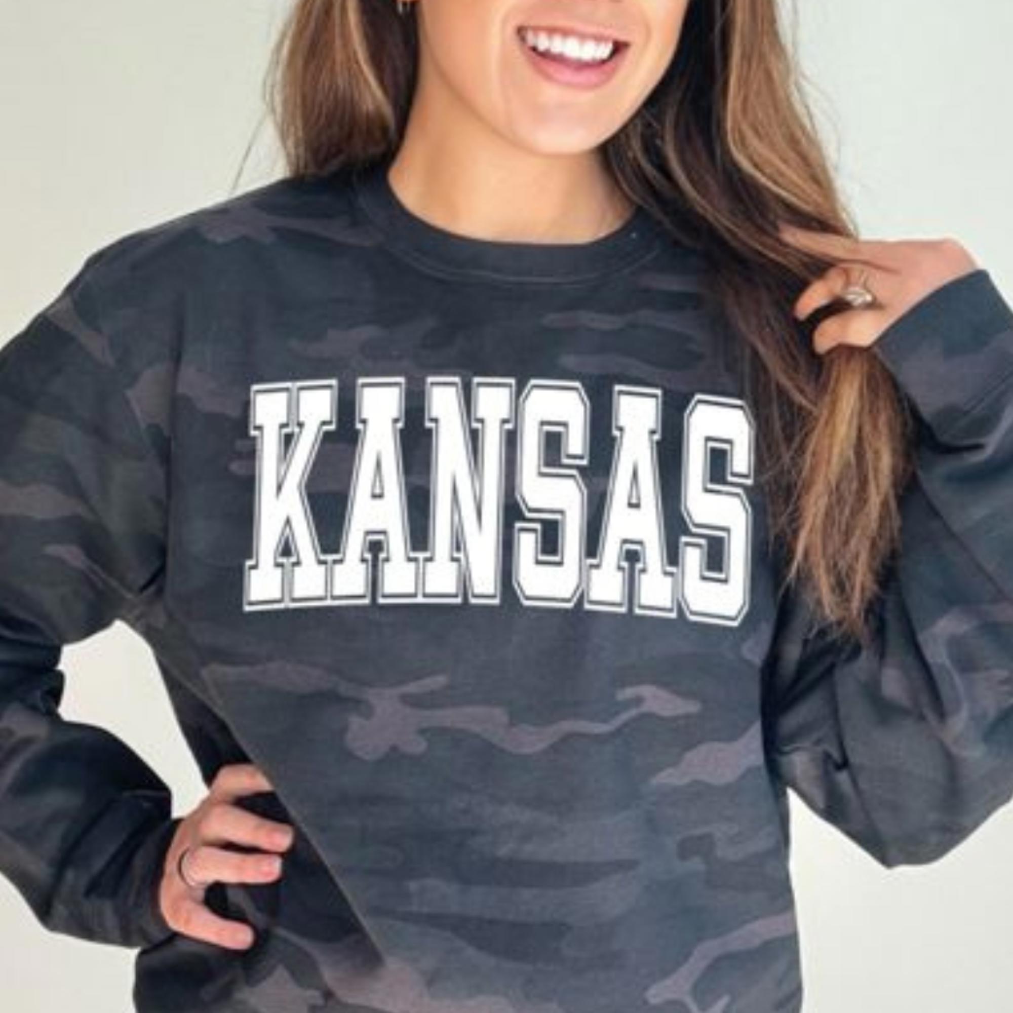 Rep your favorite team in style with our Custom Camo Varsity Sweatshirt – the perfect blend of sporty and trendy. This cozy camo crewneck features bold varsity block lettering across the chest, and you can personalize it with your choice of state, team, or mascot (up to 12 characters). Ideal for game days, casual weekends, or showing your school spirit year-round.