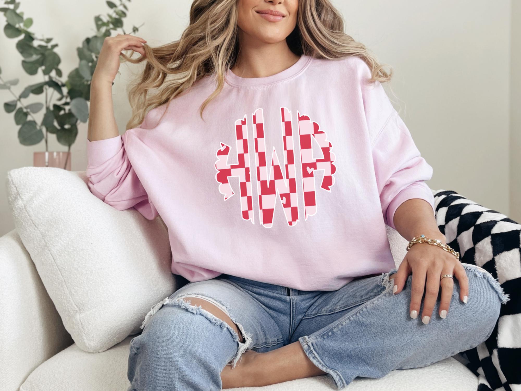 Stay cozy and stylish with our Custom Monogram Gildan Sweatshirt! This ultra-soft crewneck features your personalized initials in a stunning Heart Scalloped Pattern design, perfect for chilly days and casual outings.