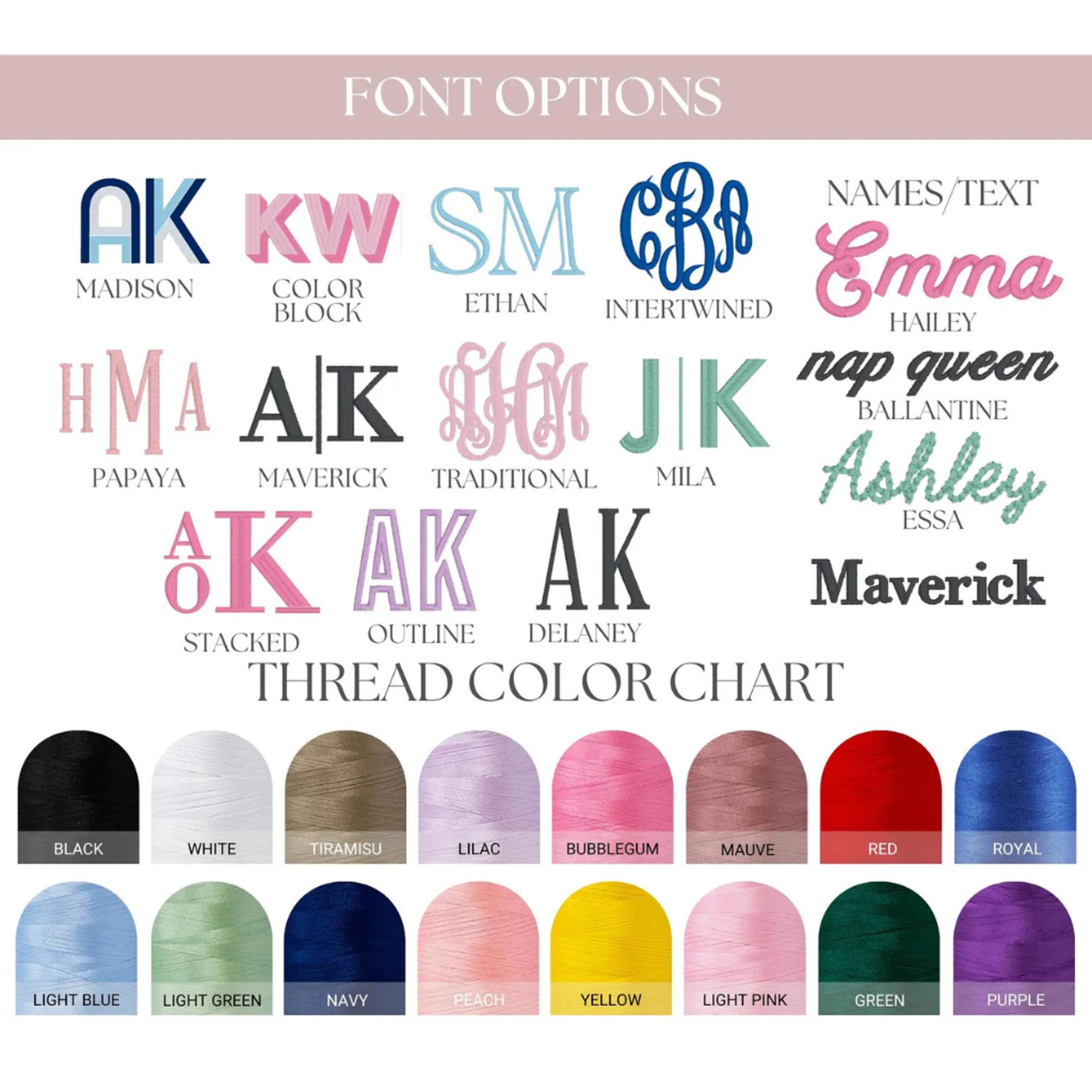 - Thread Color: Choose from options in color chart