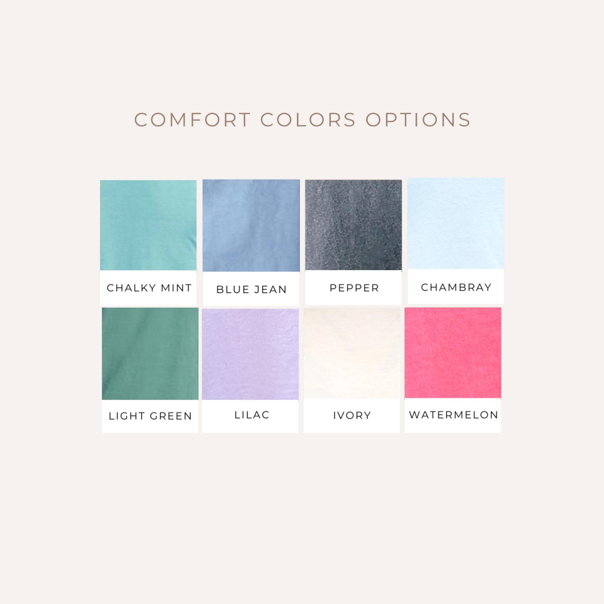 This listing is for one short-sleeved Comfort Colors graphic tee.