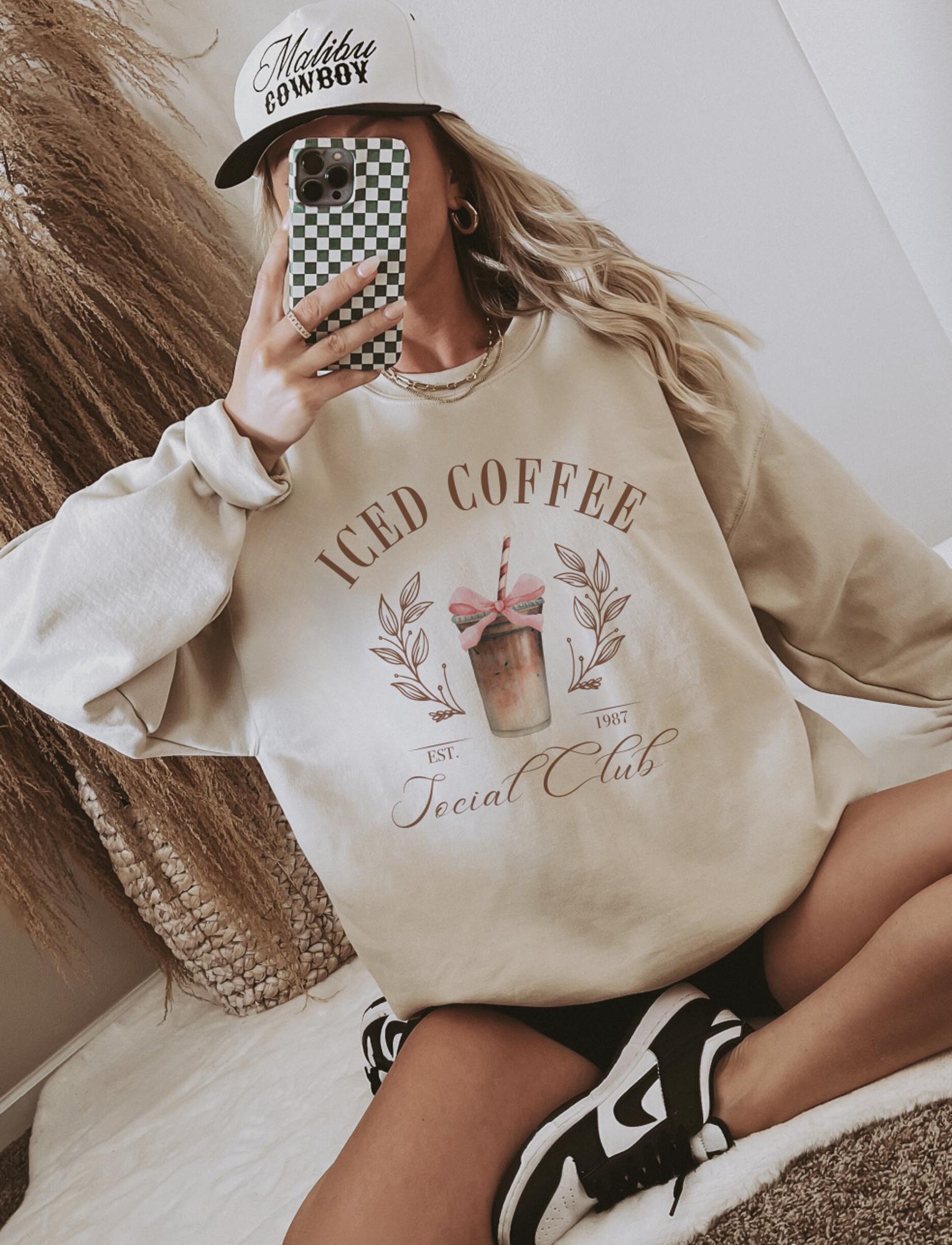 Iced Coffee Social Club Sweatshirt, Coffee Lover Gift, Gildan Oversized Sweatshirt for Women, Aesthetic Crewneck