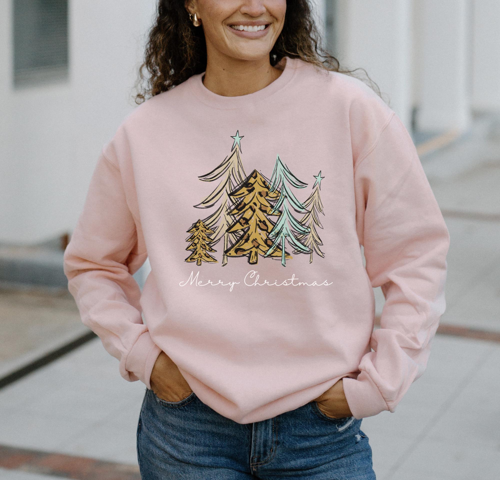 Leopard Trees Christmas Sweatshirt, Cozy Holiday Crewneck, Cute Leopard Print Christmas Tree Sweatshirt for Women