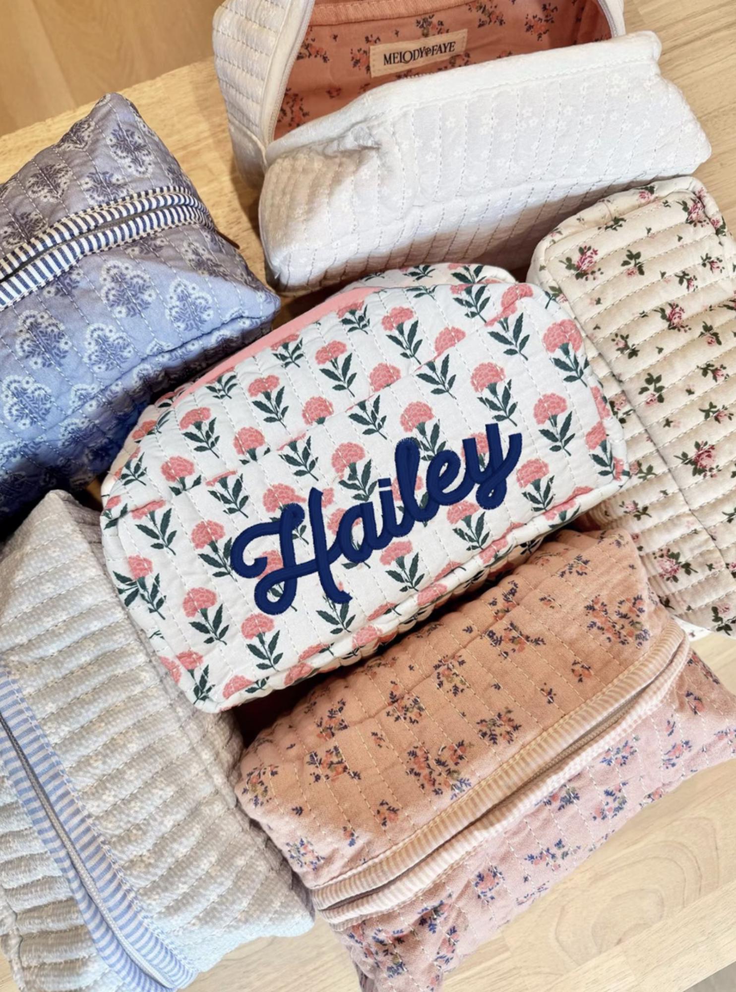 Personalized Block Pattern Floral Makeup Bag Embroidered Custom Gift Bridesmaid Gifts Quilted Toiletry Pouch Travel Cosmetic Case Gift