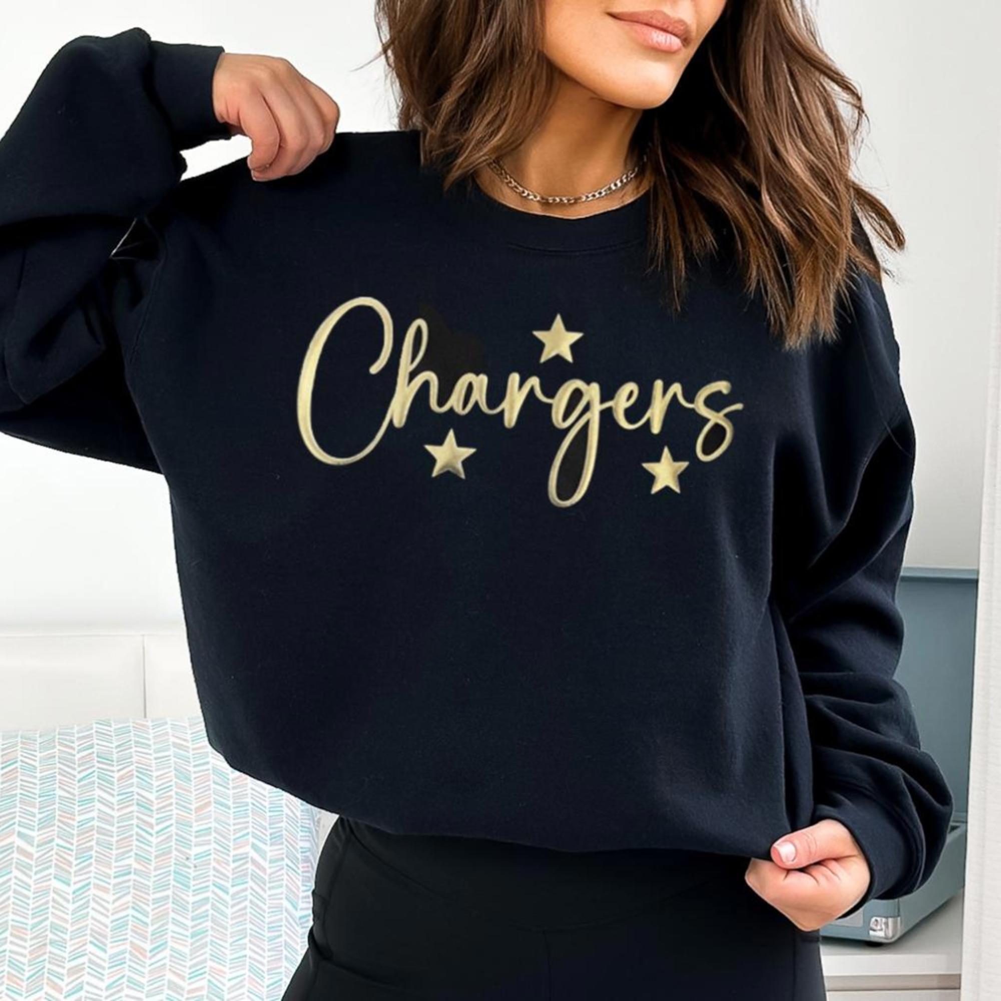 Personalized Gold Font Crewneck Sweatshirt, Personalized School Name Crewneck, Game Day Stars Sweater with Stars, Custom Sports Fan Gift