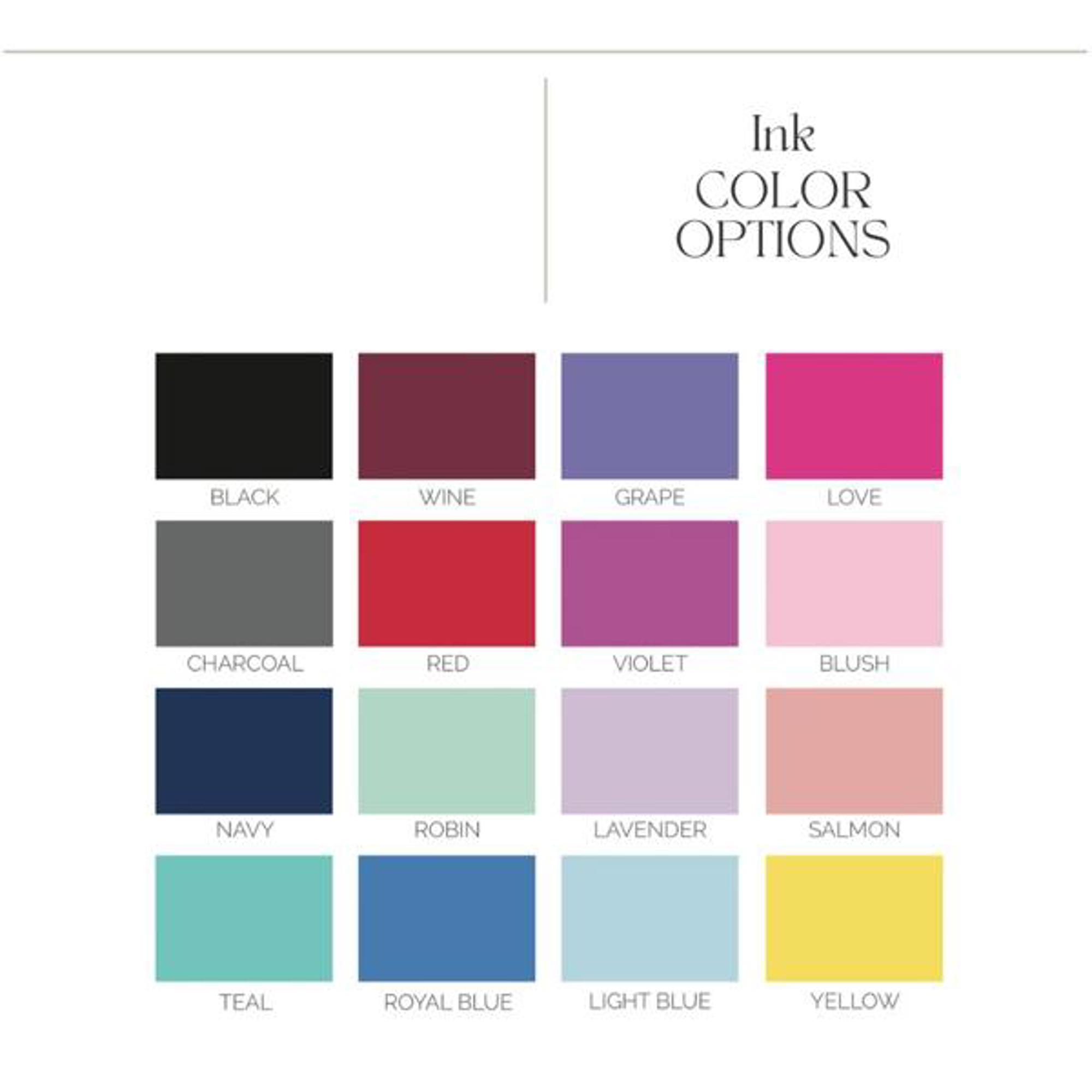 - COLOR: Ink color of your choice from the swatches shown in the last image