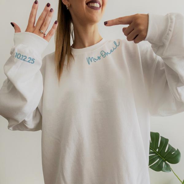 The sweater was super soft and comfortable and the stitching was really nice. I am 5’2” and 141 lbs and I ordered a medium. Shipping was quick. The only issue I had was that I didn’t realize it would say Mrs. as part of the personalization so the description was a bit misleading to me. I just wanted my husbands first name near the neckline so now it says Mrs. (His first name). lol Would like to reorder again but not sure how to contact the seller.