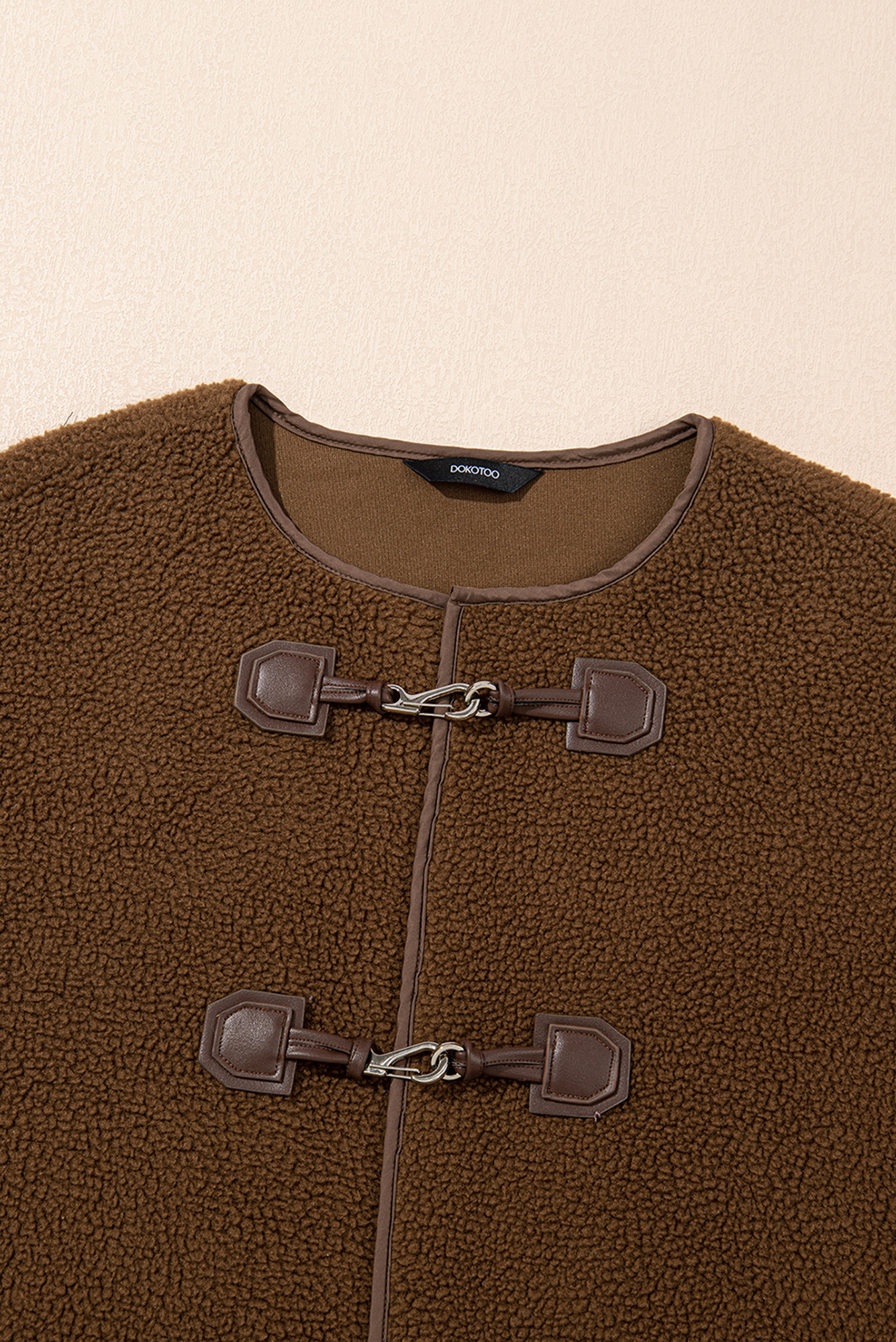 Meet Abigail Coffee toggle Teddy Coat—effortless, flattering, and easy to style for everyday life. Cozy teddy fabric for ultimate comfort and warmth. Distinctive toggle button closure for a unique look. Relaxed fit with dropped shoulders for effortless style. Contrasting trim detail adds a subtle edge. womens coats are elegant, stylish and quality. Material: 100%Polyester.