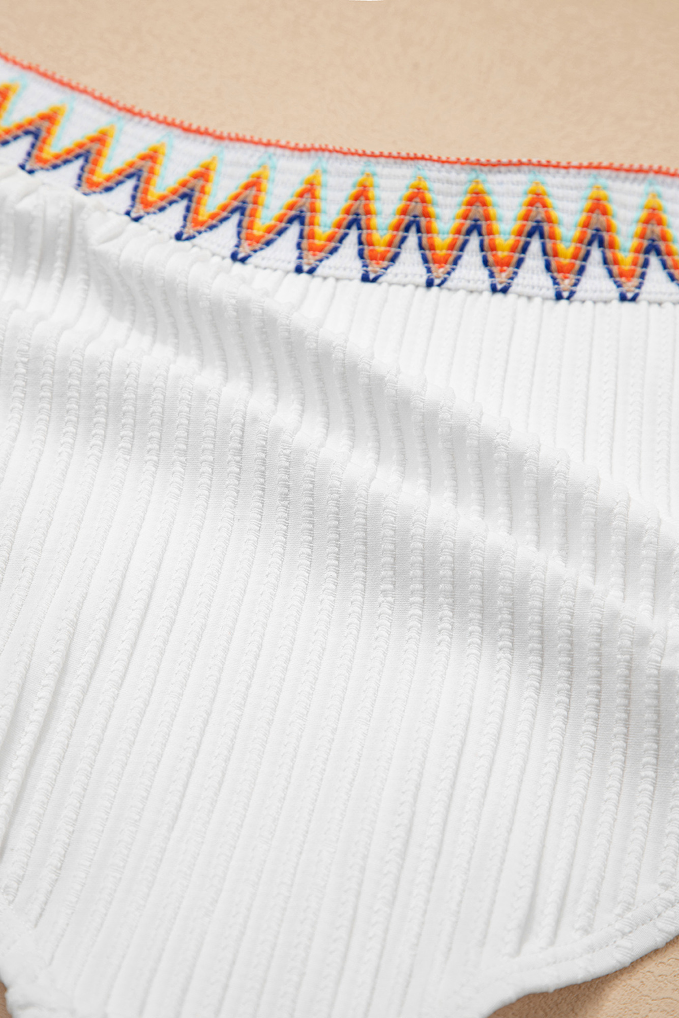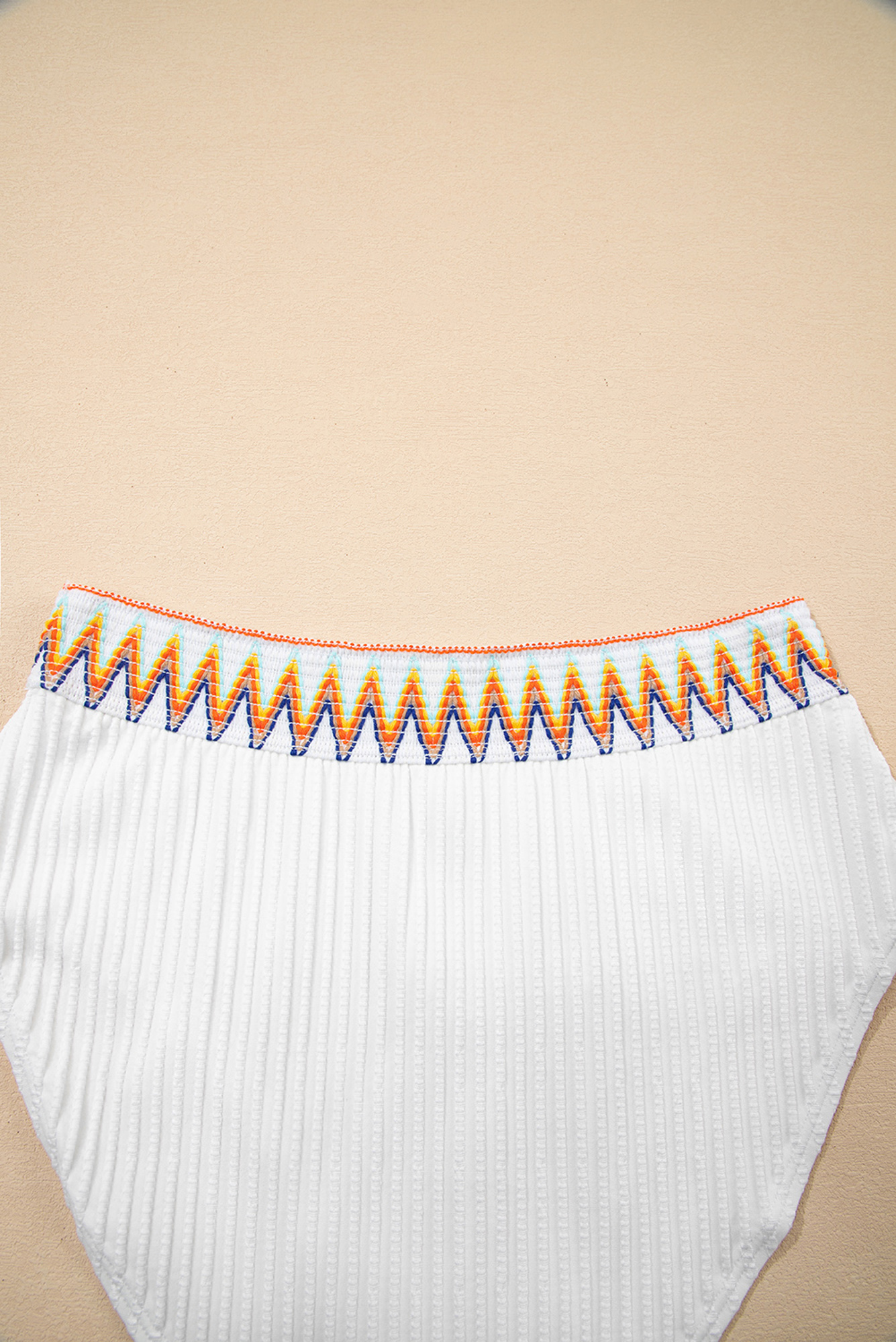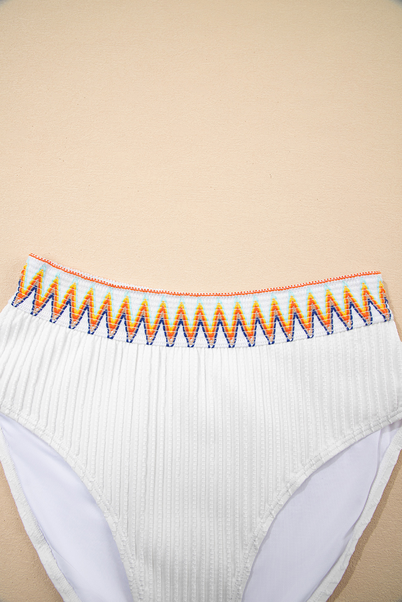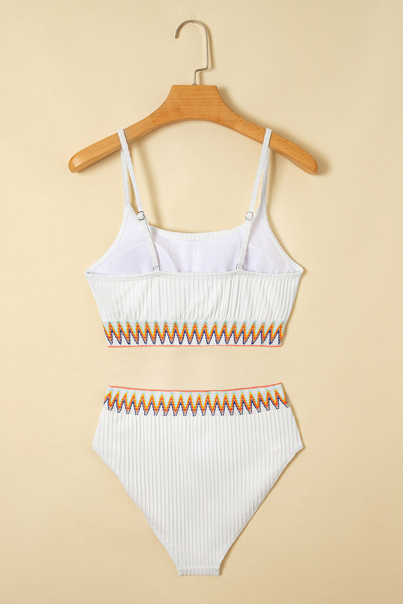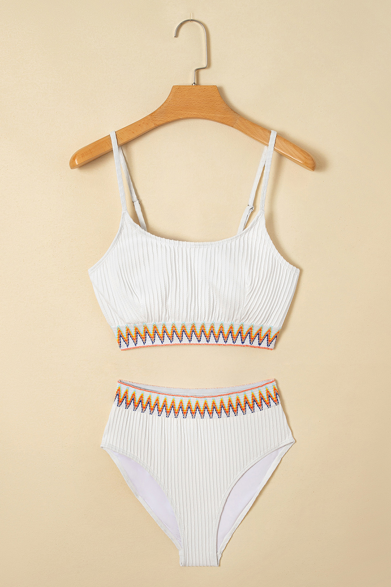 Alena High Waist 2pcs Swimsuit is designed to move with you and keep you comfortable all day long. This high waist bikini is unique with textured fabric made. The contrast banding design creates a chic detail and colorblock look. A perfect swimsuit to enhances sexy figure and curve. Perfect for any beach or water activity. Material: 95%Polyester+5%Elastane.