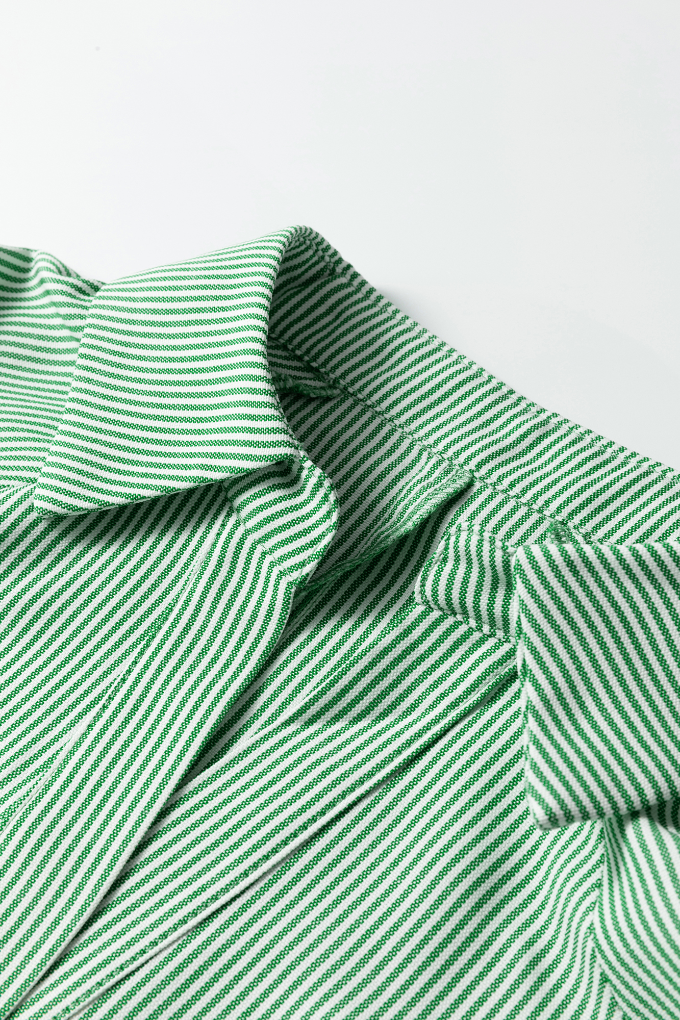 Throw on Alexandra Collared Half Sleeve Blouse when you need an easy outfit that still looks pulled together. Classic striped print blouse with a chic split neck and collared design. Half sleeves keep it breezy and perfect for spring or summer wear. Soft, lightweight fabric ensures comfort and effortless style. Easily pairs with jeans or skirts for a smart-casual look. Material: 65%Polyester+35%Cotton.