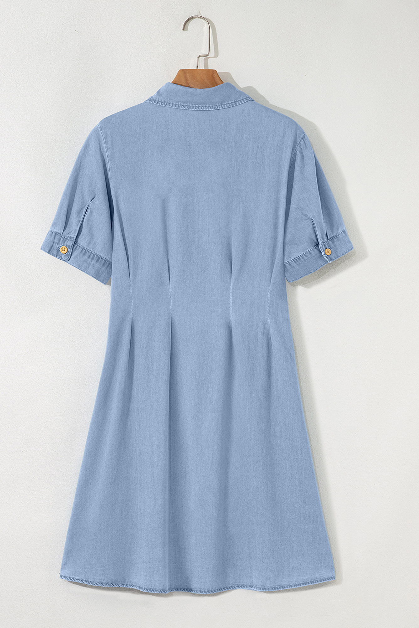 Amaia Waist Short Sleeve Shirt is the piece you'll reach for when you want to look put together in seconds. Versatile and stylish denim shirt dress for ladies. This denim dress is light and comfy with fine fabric made. Features a slim waist design for a flattering fit. Pleated details add a chic detail to the chambray dress. Material: 100%Cotton.