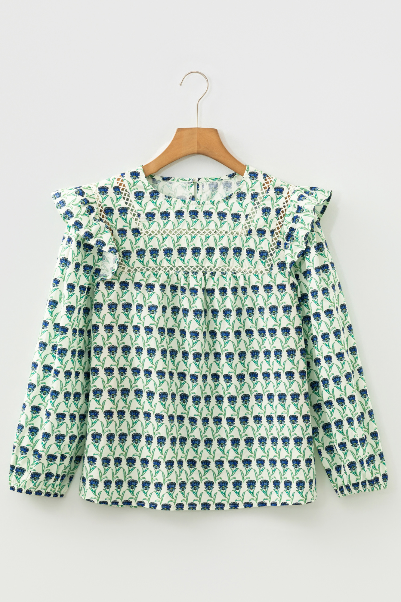 Amalia Long Sleeve Blouse Long Sleeve Top keeps things simple: cozy, flattering, and ready for wherever the day takes you. Floral blouse with delicate lace detail adds soft, feminine charm. Ruffle trim and puff sleeves bring elegant details to this spring blouse. Lightweight long sleeve blouse keeps you stylish in any season. A versatile floral blouse that pairs effortlessly with jeans or skirts. Material: 100%Cotton.
