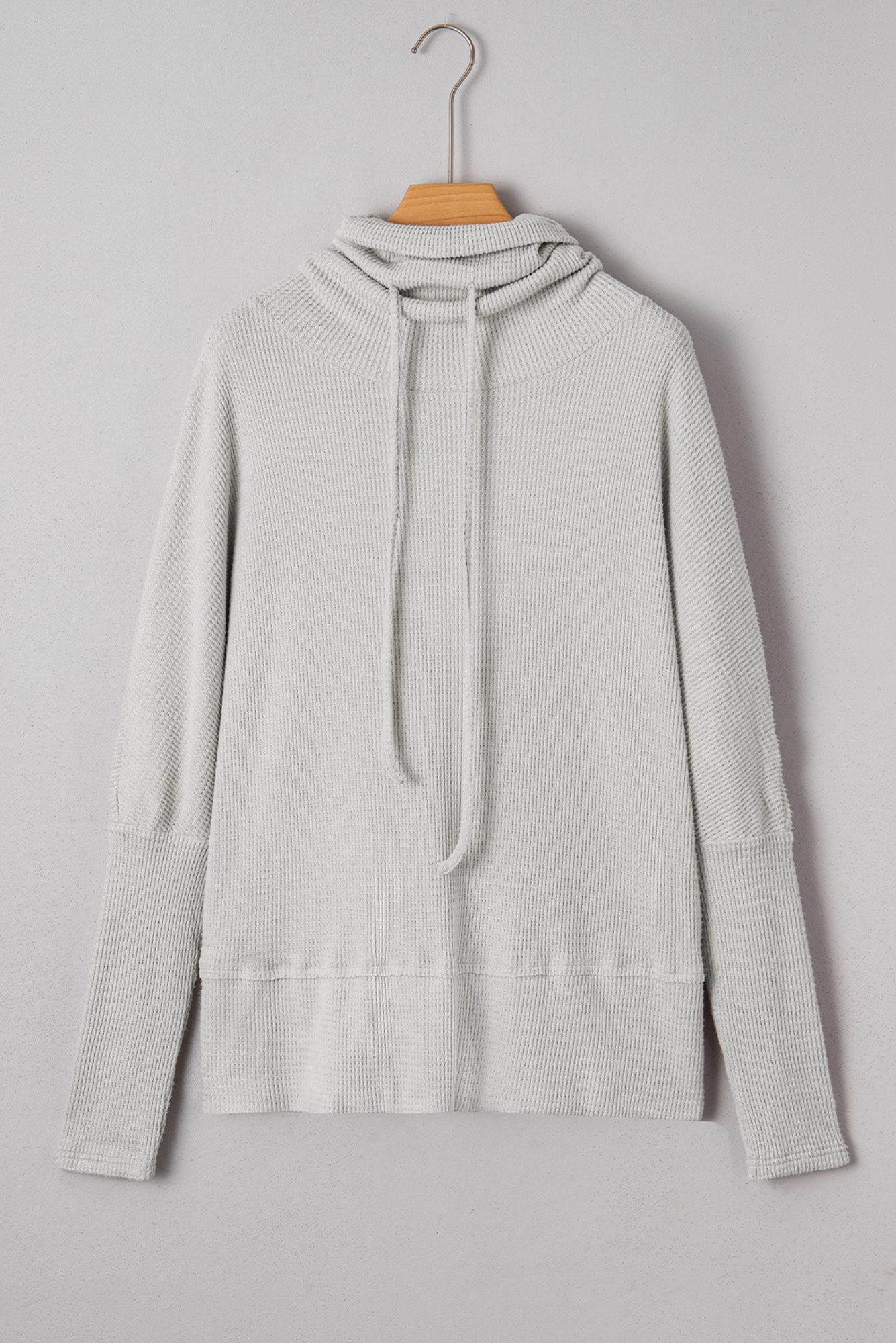 Throw on Amber Drawstring Cowl Oversize Top when you need an easy outfit that still looks pulled together. This oversized pullover is very flattering for any body shape. It features an oversized fit style with a drawstring cowl neck. The dolman sleeve design adds a touch of romance. This baggy top is stylish and warm to make fashion statements. Material: 95%Polyester+5%Elastane.