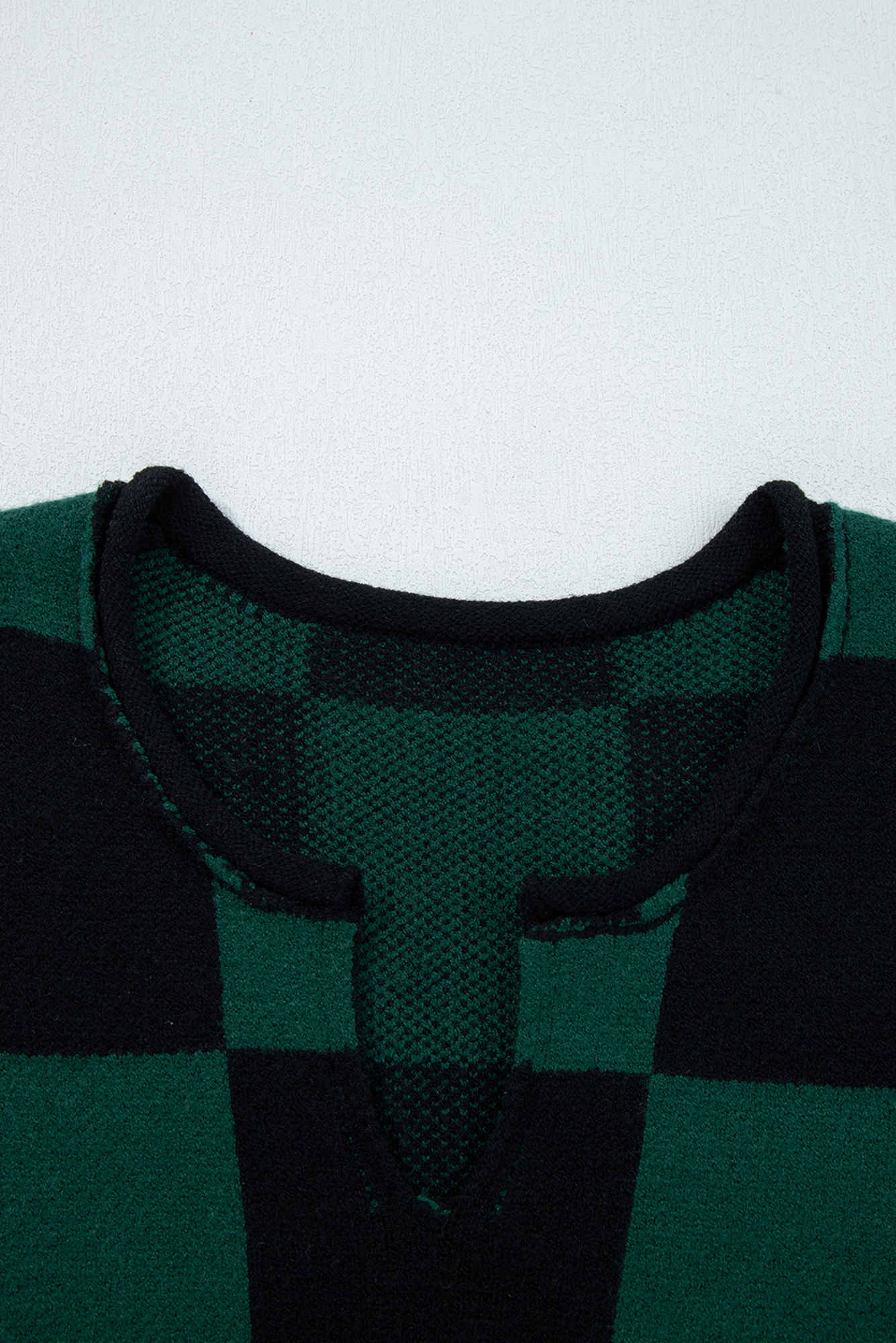 Meet Amelia Drop Shoulder Knit Sweater-effortless, flattering, and easy to style for everyday life. This checkered sweater is perfect for the season. The trendy checked pattern adds a fun twist to elevate your everyday style. A v-cut neckline, drop shoulder and relaxed fit silhouette. Perfect to match with jeans and skirts for a chic fall style. Material: 52%Viscose+26%Polyester+22%Polyamide.