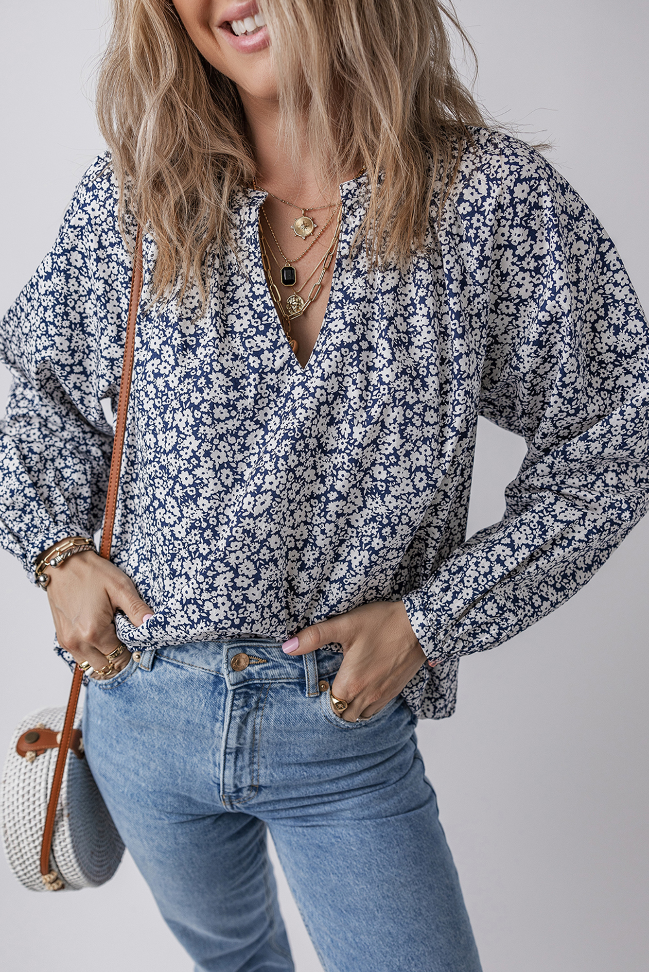 Reach for Amelie Notched Puff Sleeve Blouse whenever you want an easy win for your wardrobe. Show your feminine charm in this floral blouse. This women’s blouse is elegant and graceful with chic style and pattern. The split neckline enhances sexy collarbones. The puff sleeve design makes it more temperamental. Material: 100%Cotton.