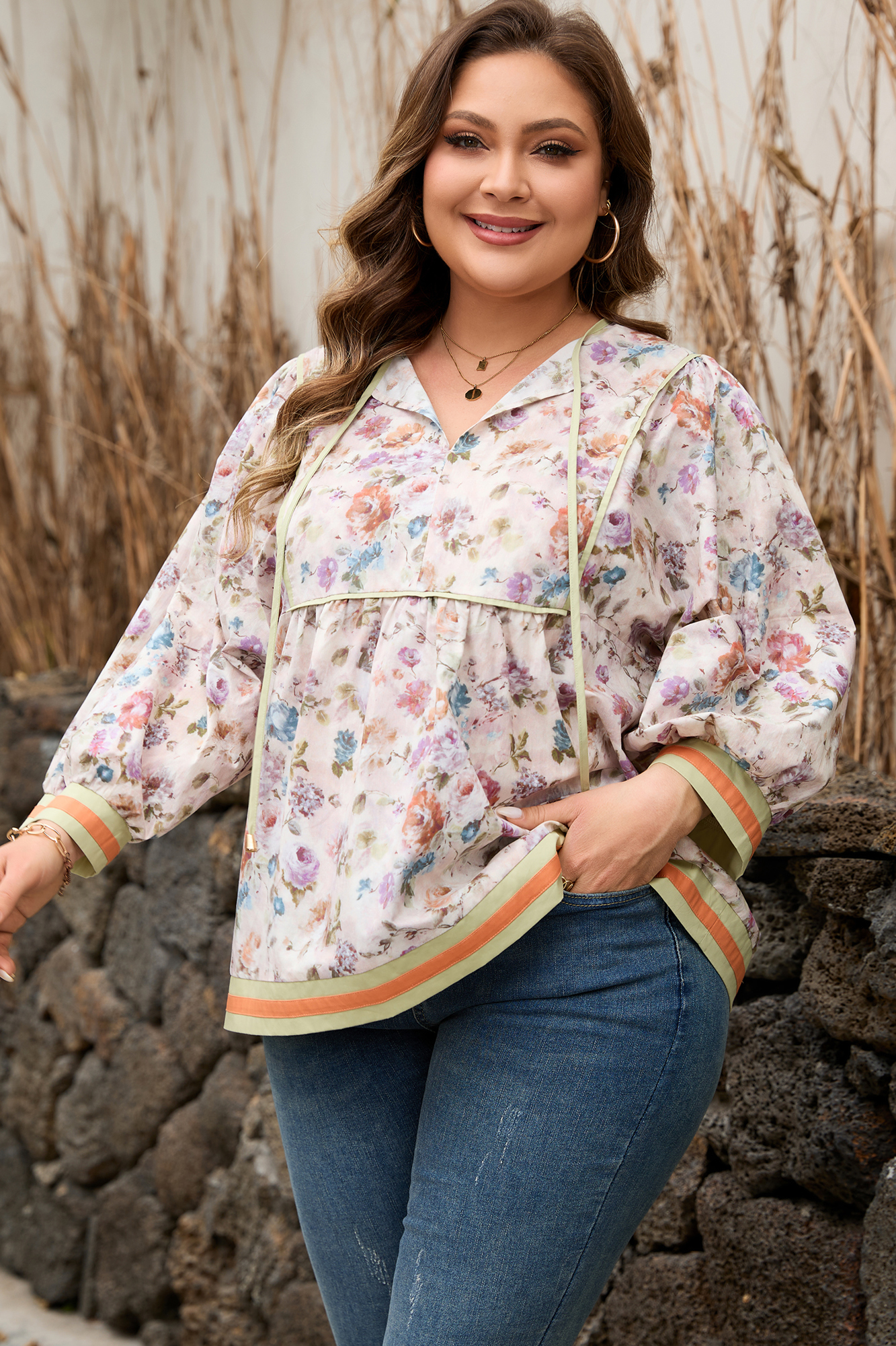 Let Andi Striped Detail Babydoll PLUS Blouse do the work for you on days you want instant style with zero fuss. Your new favorite plus size blouse has just arrived. Featuring charming floral print and playful striped details. It has a tie split neck, 3/4 sleeves, and a babydoll silhouette. Made from quality cotton fabric, quite comfortable to wear. Shop cheap fashion plus size tops for women at dear-lover. Material: 100%Cotton.