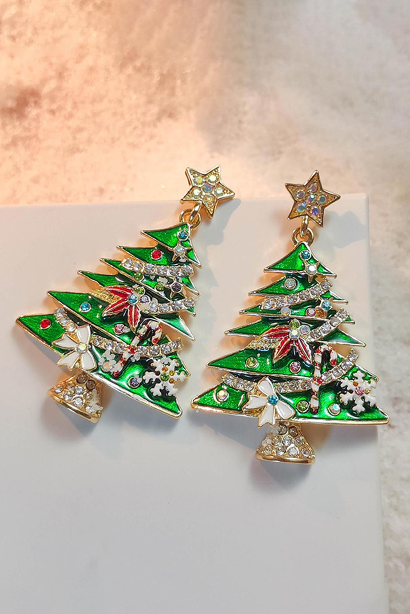 Meet Anne Star Christmas Tree Earrings—effortless, flattering, and easy to style for everyday life. These Christmas tree earrings are very cute. Delicate rhinestones and ornaments on the tree. This is an asymmetric pair with different rhinestones. A great gift for birthdays, Christmas, or any other occasion. jewelry is essential for and daily fashion. Material: 100%Alloy.