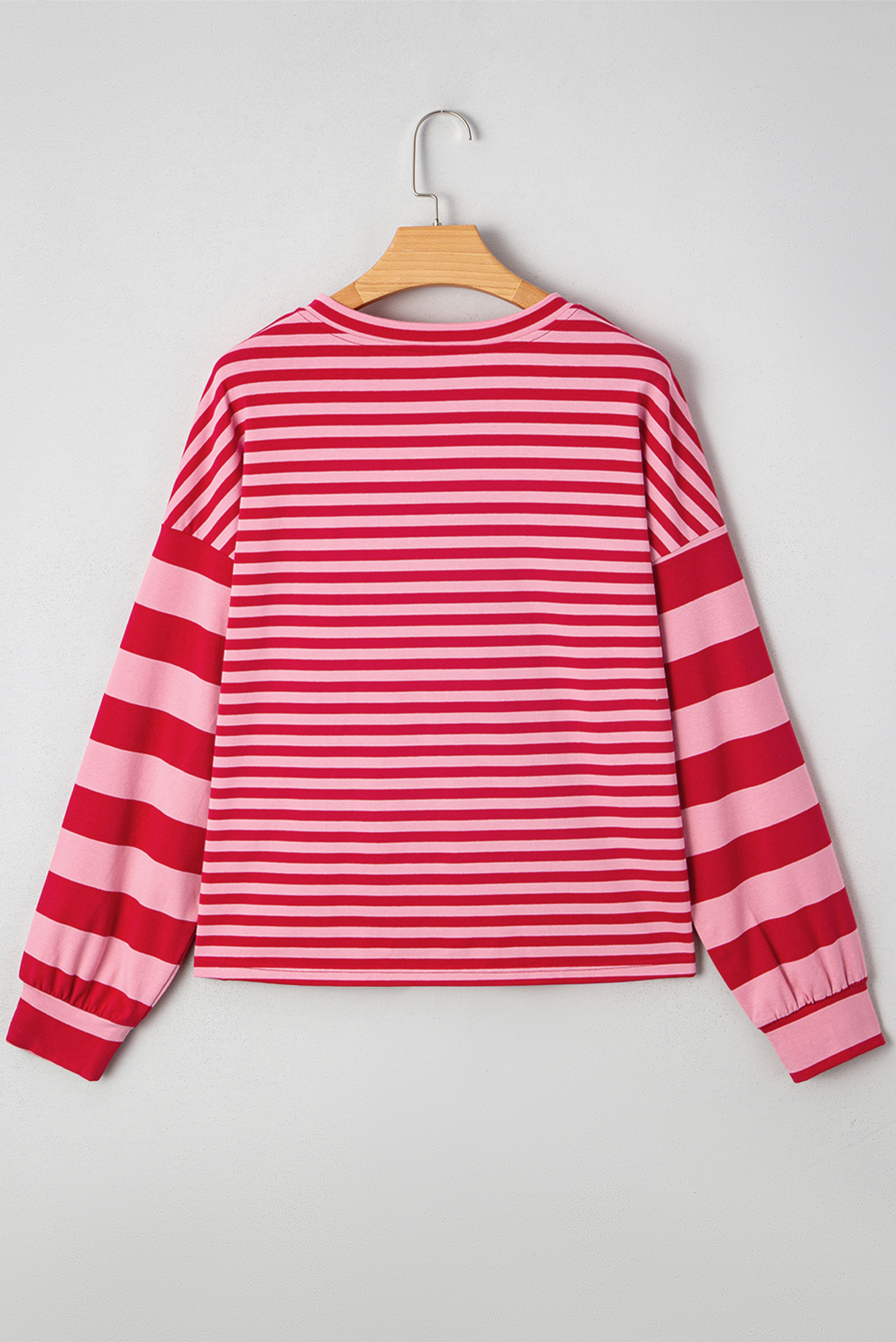 Meet Annika Shoulder Patchwork Sleeve Pullover—effortless, flattering, and easy to style for everyday life. Trendy mix striped pattern adds a bold, eye-catching statement. Drop shoulder design creates a relaxed shoulder curve. Flattering V-neckline for a chic and versatile style. Soft, cozy knit perfect for casual wear and seasonal layering. womens tops include pullover styles. Material: 95%Cotton+5%Elastane.
