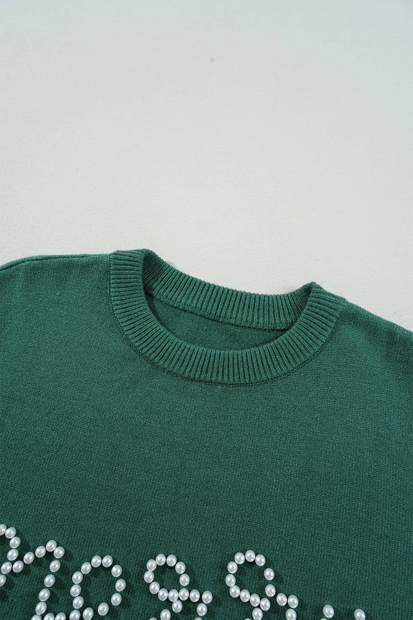 Meet Aria Beaded Merry Casual Sweater—effortless, flattering, and easy to style for everyday life. The sweater is a festive piece perfect for the season. The pearl beading adds a touch of elegance and sparkle. The “merry” pattern is a cheerful reminder of the joyous spirit of the season. Pair it with jeans and flats for a complete look. sweaters keep you cozy on those chilly winter days. Material: 52%Viscose+26%Polyester+22%Polyamide.