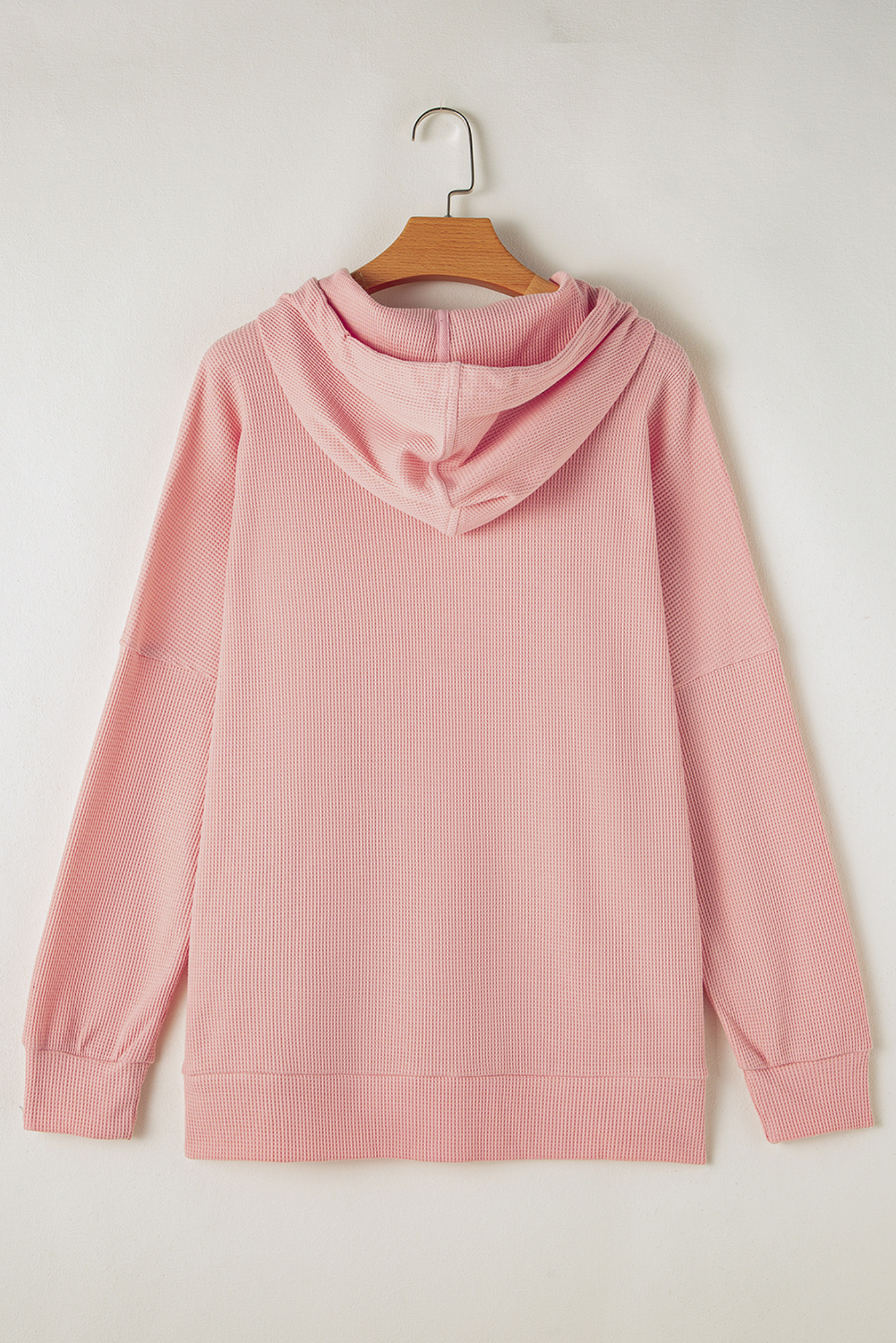 Meet Aria High Low Oversized Hoodie—effortless, flattering, and easy to style for everyday life. Soft jacquard knit fabric creates this pullover hoodie a cozy feel. Stylish high-low design and oversize fit enhance a casual slender silhouette Convenient kangaroo pocket for storage and decoration. High quality fleece-lined design provides warmth and comfort. Versatile womens hoodies are perfect for fall and winter. Material: 75%Polyester+25%Cotton.