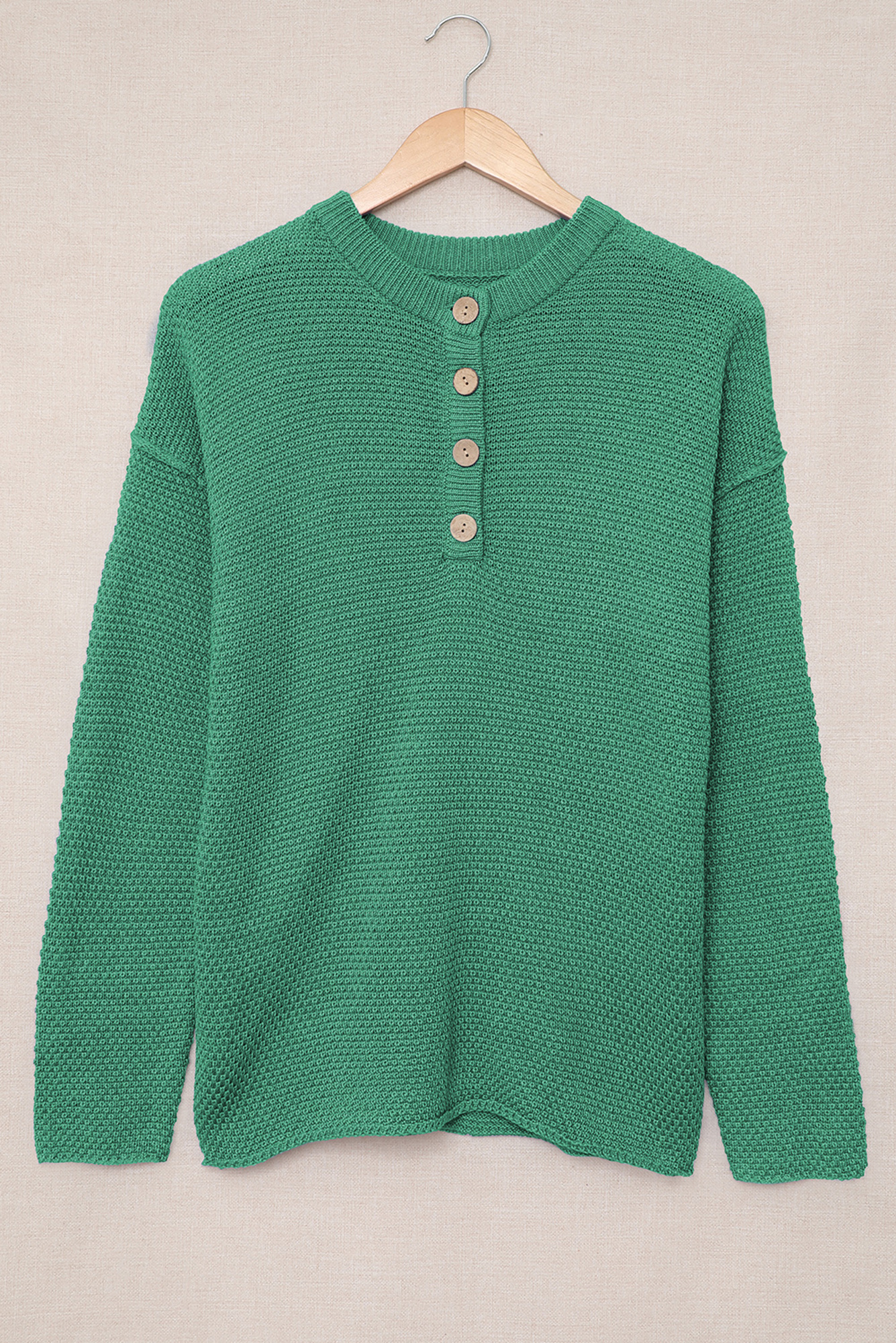 Meet Aria Pullover Drop Shoulder Sweater—effortless, flattering, and easy to style for everyday life. Henley sweater with buttons is classic and easy to pair, a must-have staple for winter Knit top with good quality fabric and unique texture ensures you a comfy experience and elegant look Long sleeve sweater features side split design, stylish and eye-catching Customers can pair the pullover with other clothes like pants, jeans, shoes and heels sweaters for occasions like office, party, date and etc. Material: 55%Acrylic+45%Cotton.