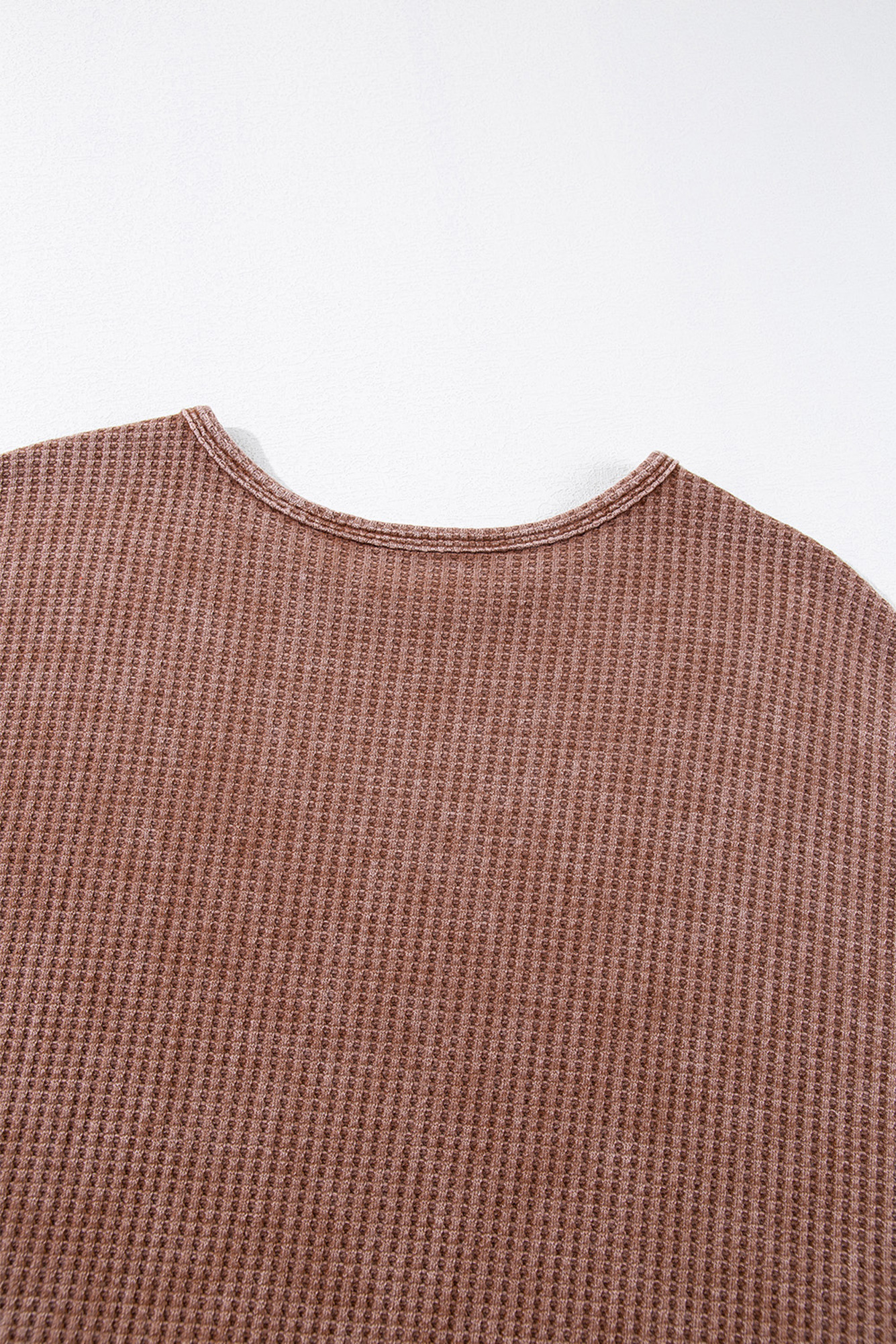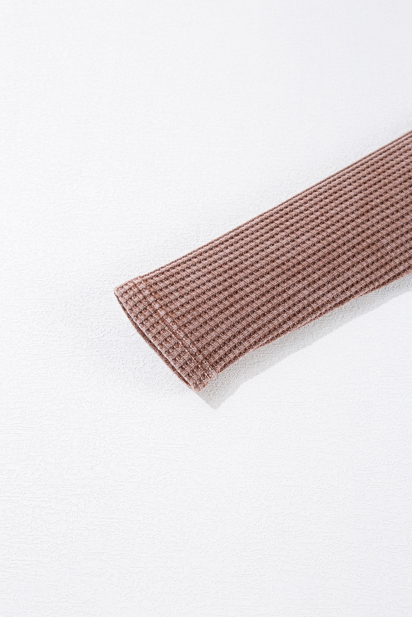 Meet Ariella High Low Loose Top—effortless, flattering, and easy to style for everyday life. This waffle knit top provides a cozy texture design. Embrace boho chic with a stylish fringed hem detail. Elevate your look with a trendy high-low silhouette. Stay comfortably covered with long sleeves for added warmth. long sleeve tops are the perfect combo of chic and casual. Material: 60%Cotton+35%Polyester+5%Elastane.